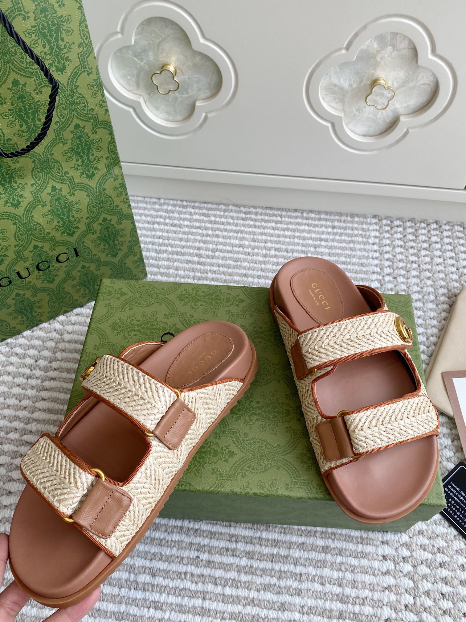 GC sandal with Double G Brown mix Beige Canvas Sheepskin 291016