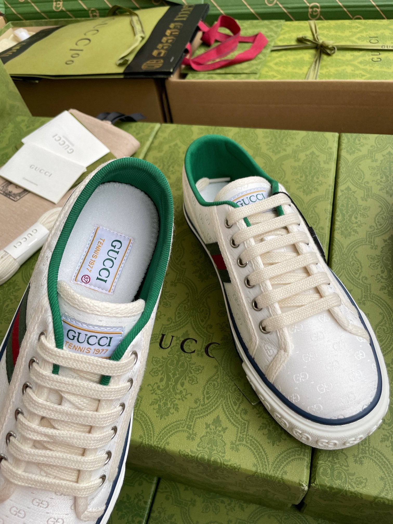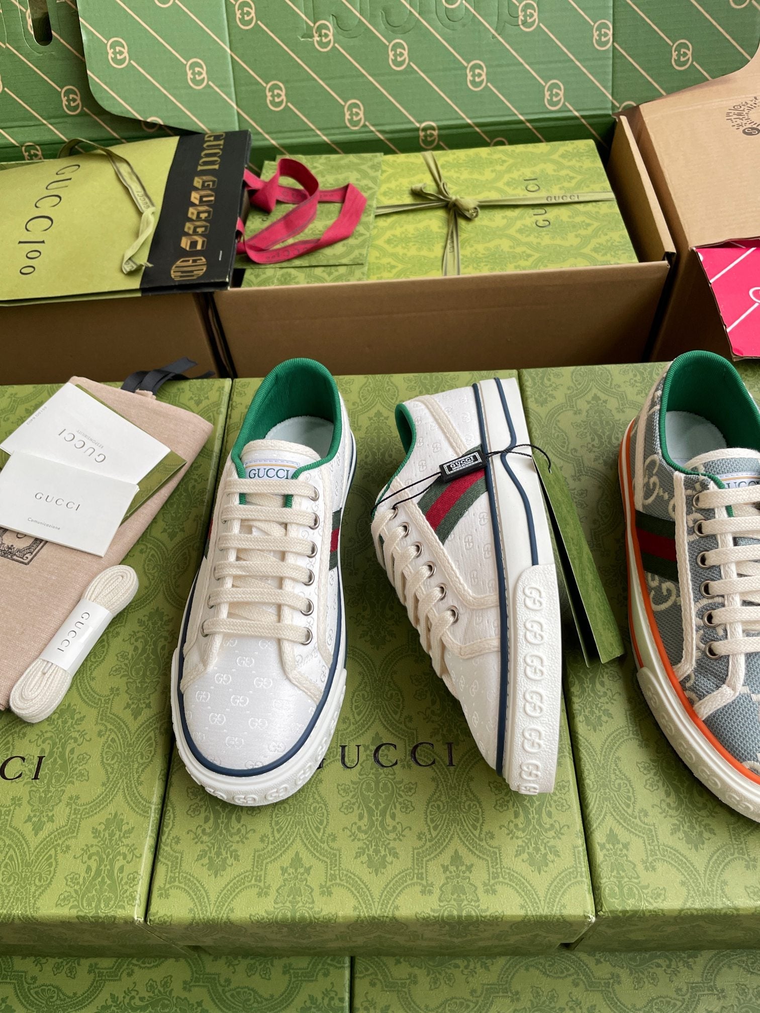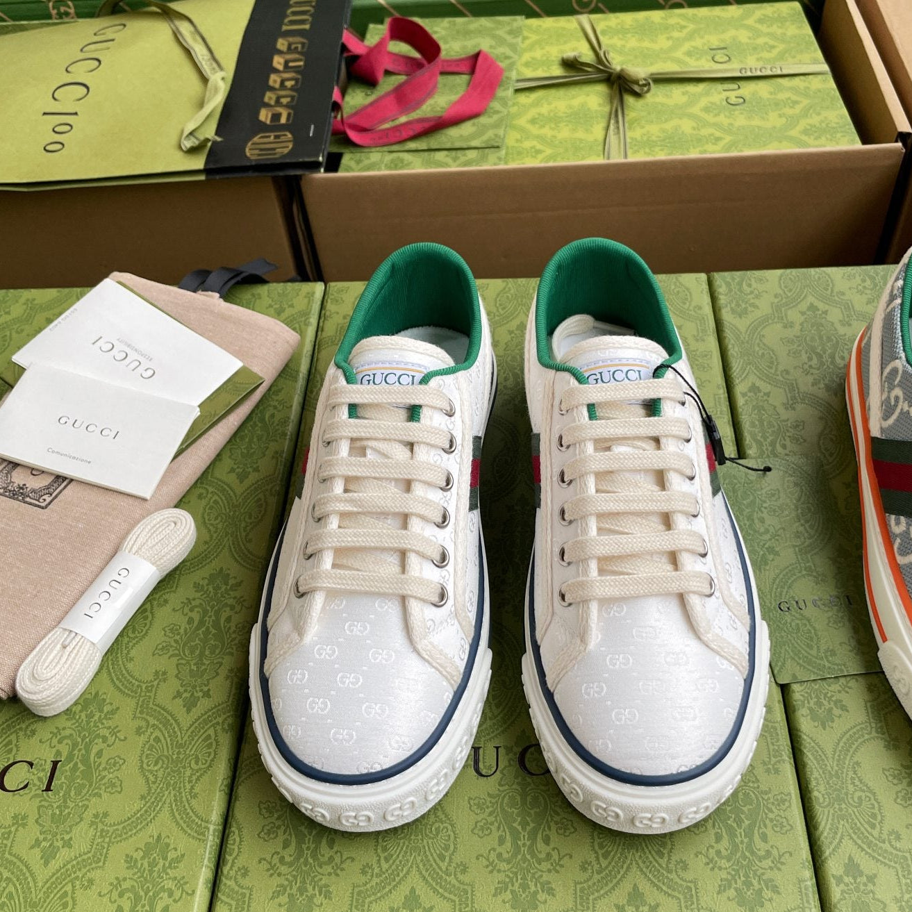 GG 26 Platform Sneaker White Green Monogram Canvas 632829
