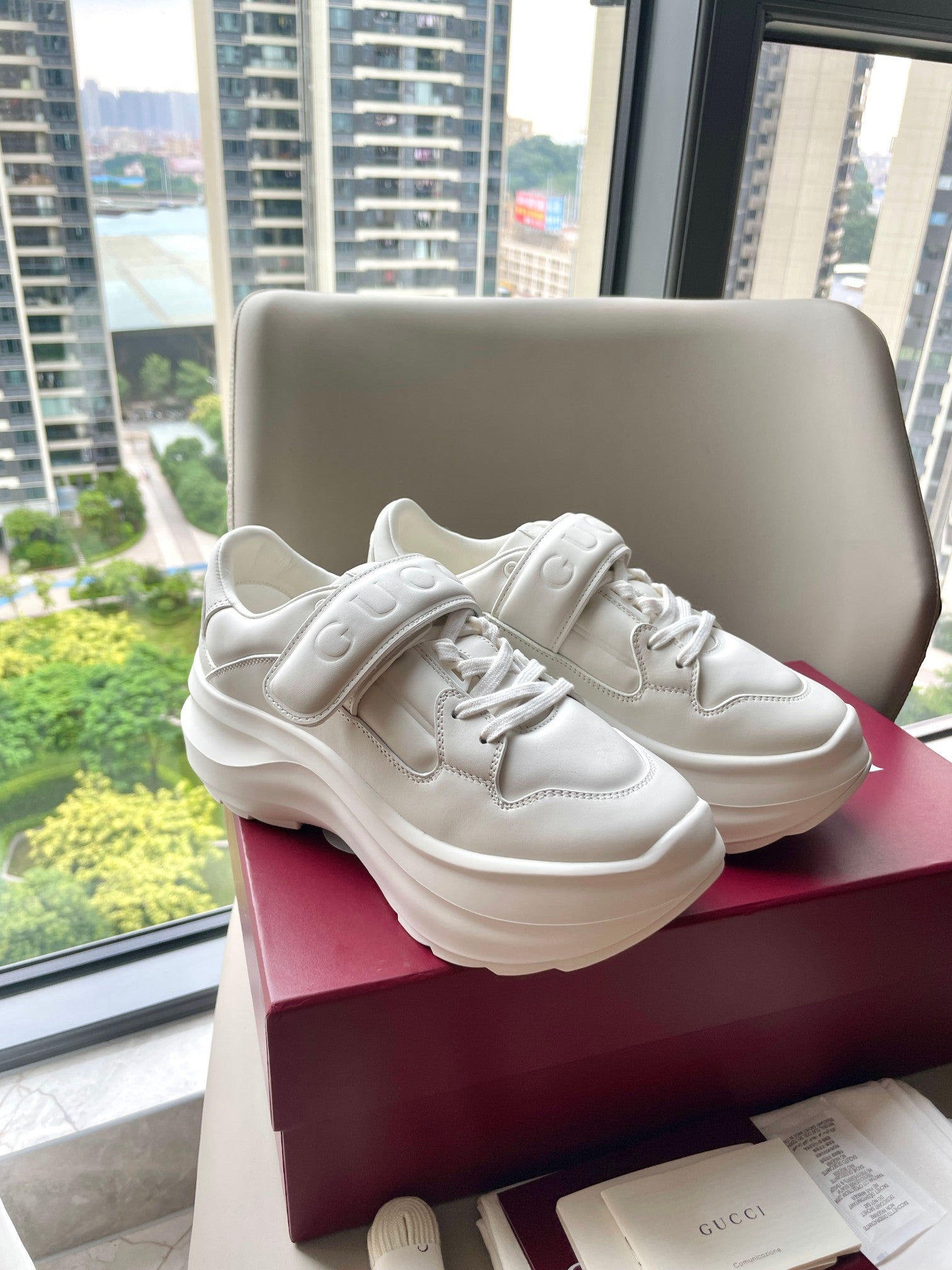 GG 26 Platform Sneaker White Sheepskin 632854