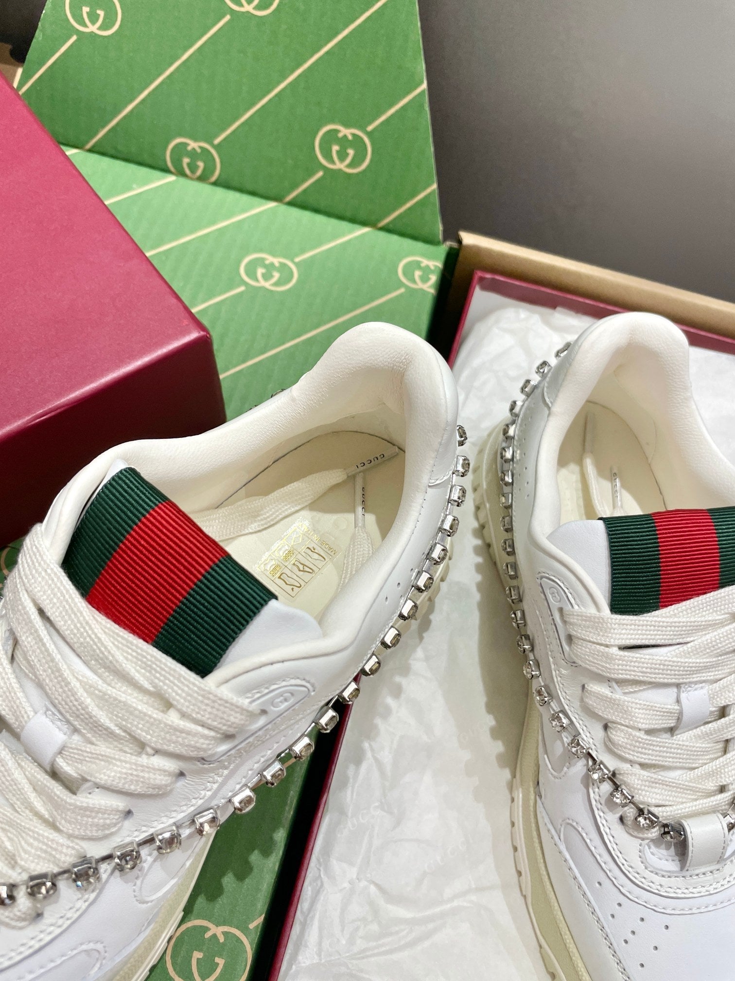GG 26 Sneaker White Cowhide Chain With Rhinestones 632873