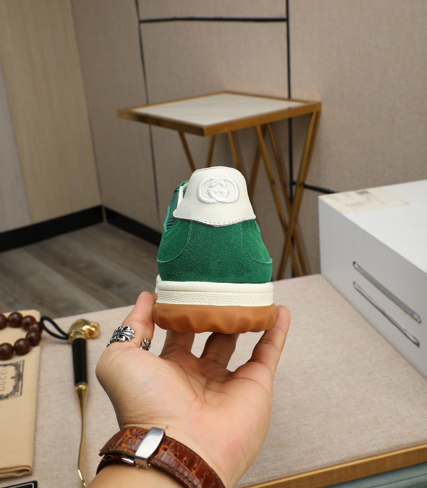 GG Men's G75 Sneaker Green Mesh Suede 270520