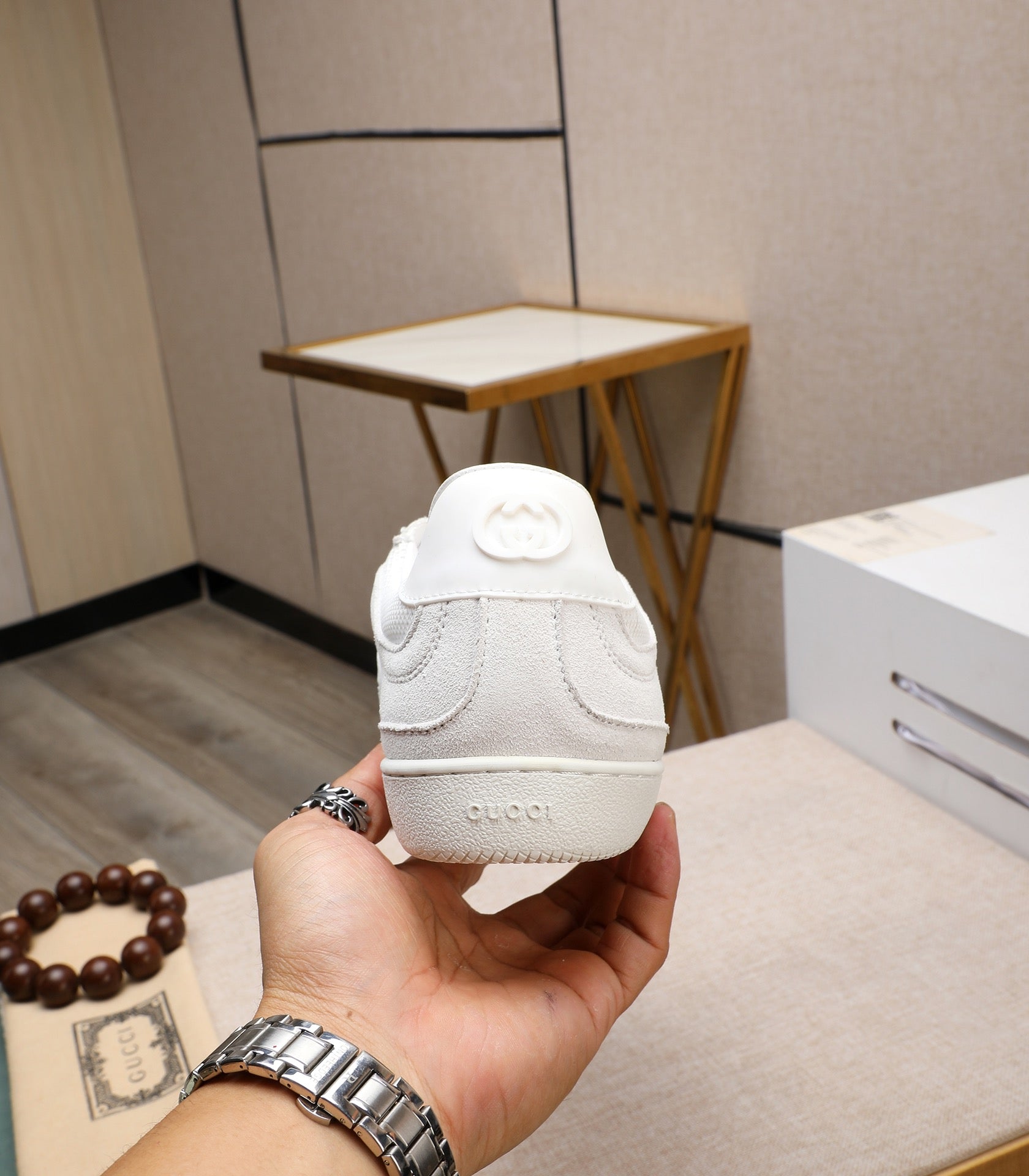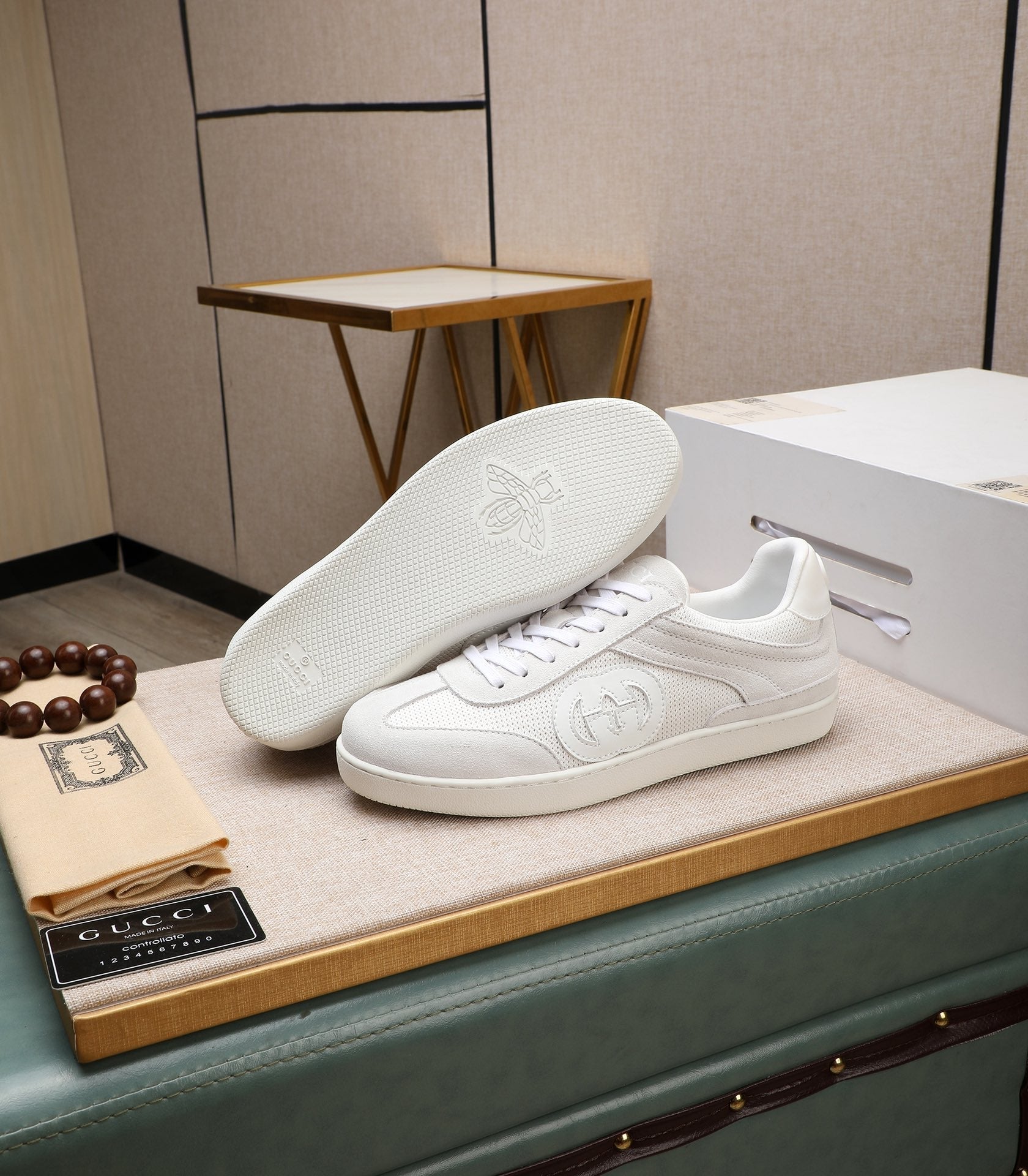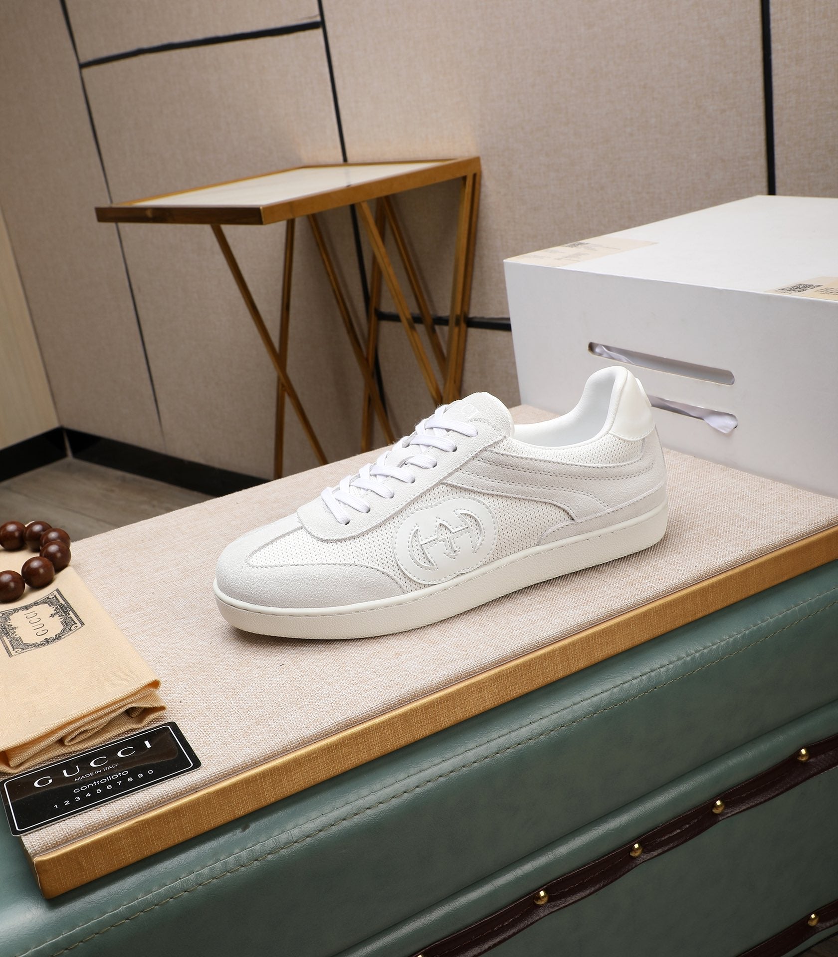 GG Men's G75 Sneaker White Mesh Suede 477880