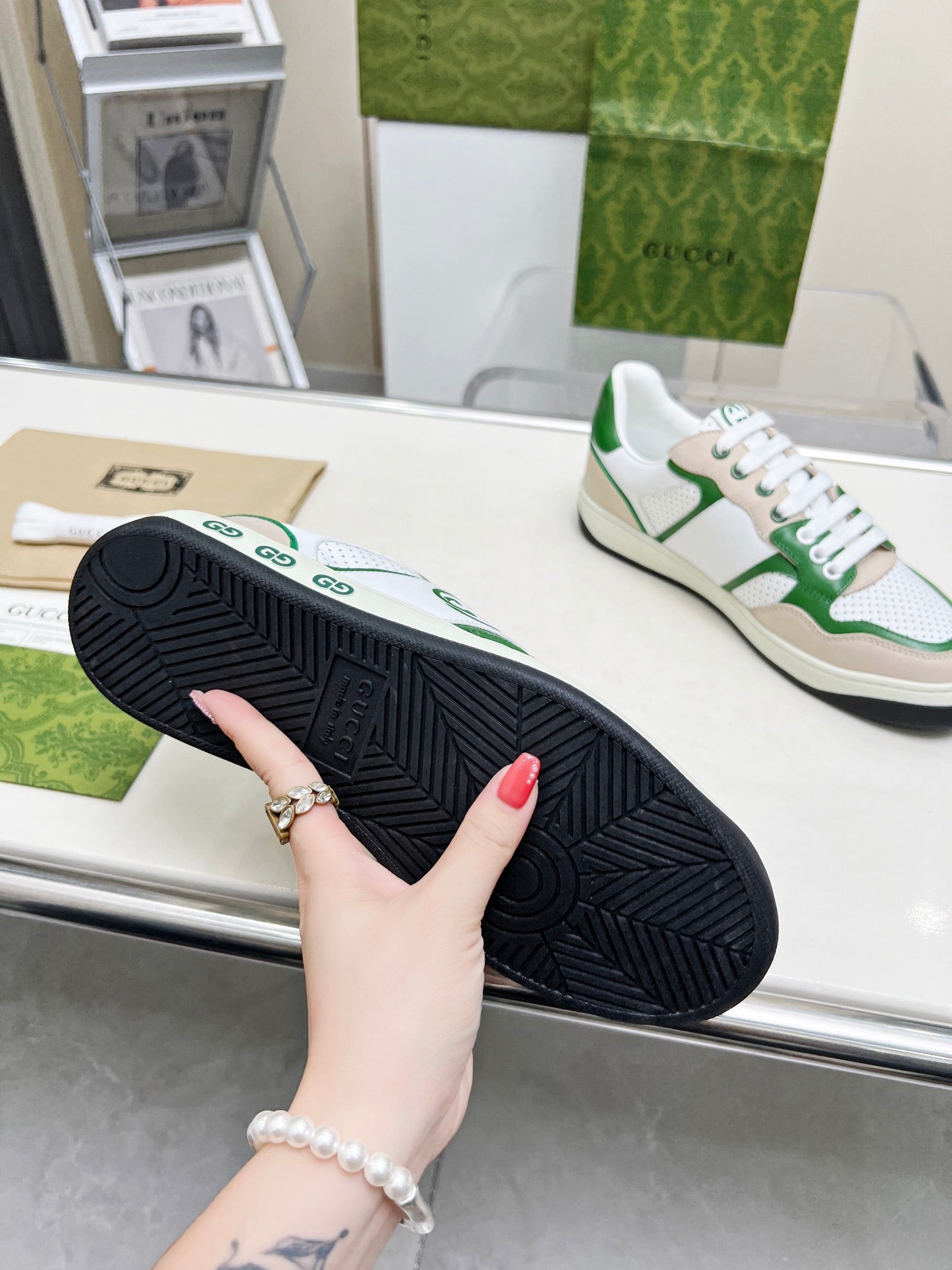 GG Men's MAC80 Sneaker White Green Cowhide 539520