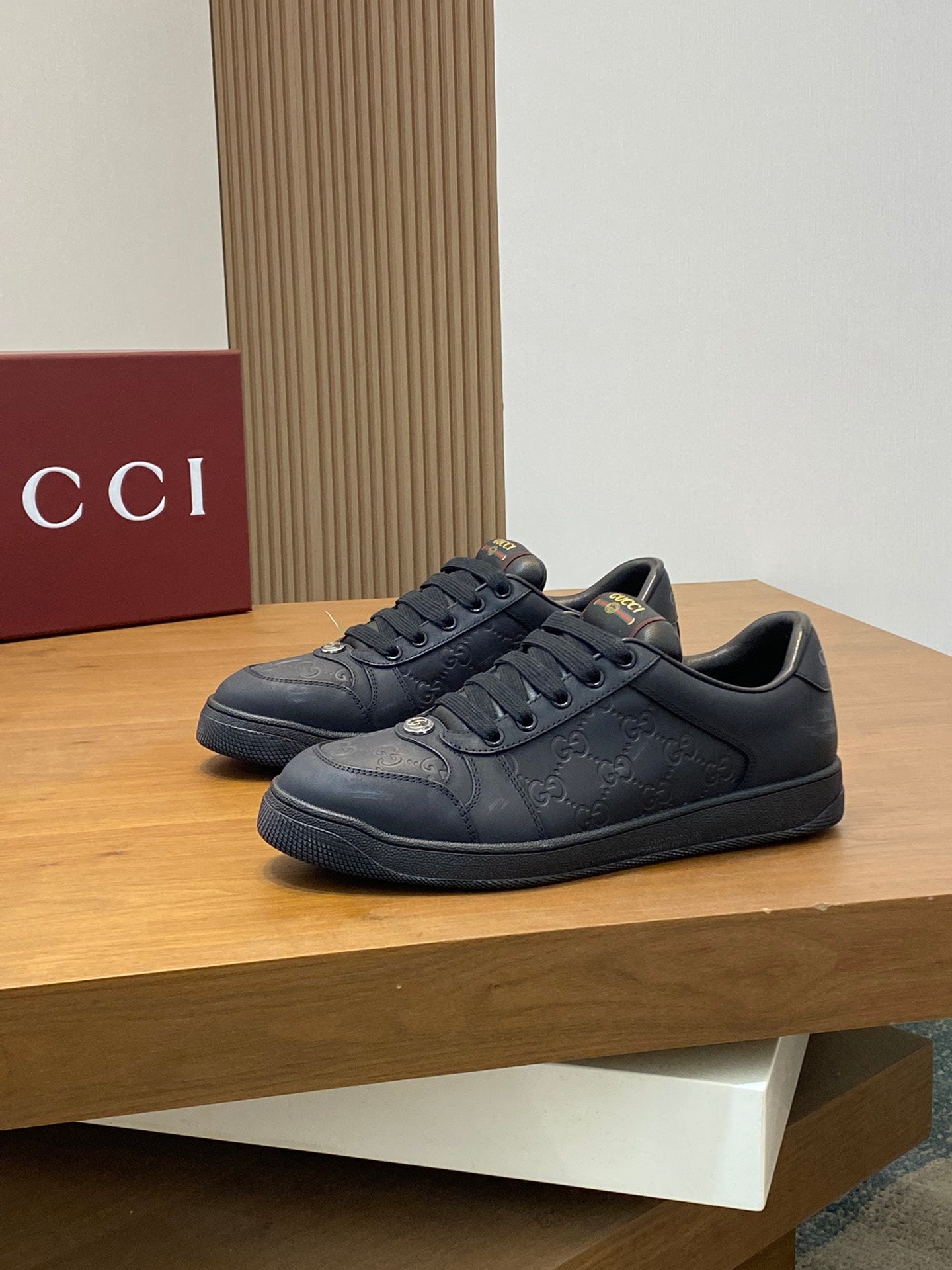 GG Men's Screener Sneaker Black Cowhide 534046