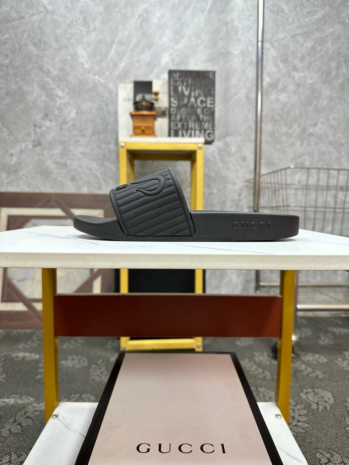 GG Men's Slide Black Sheepskin Rubber 540099