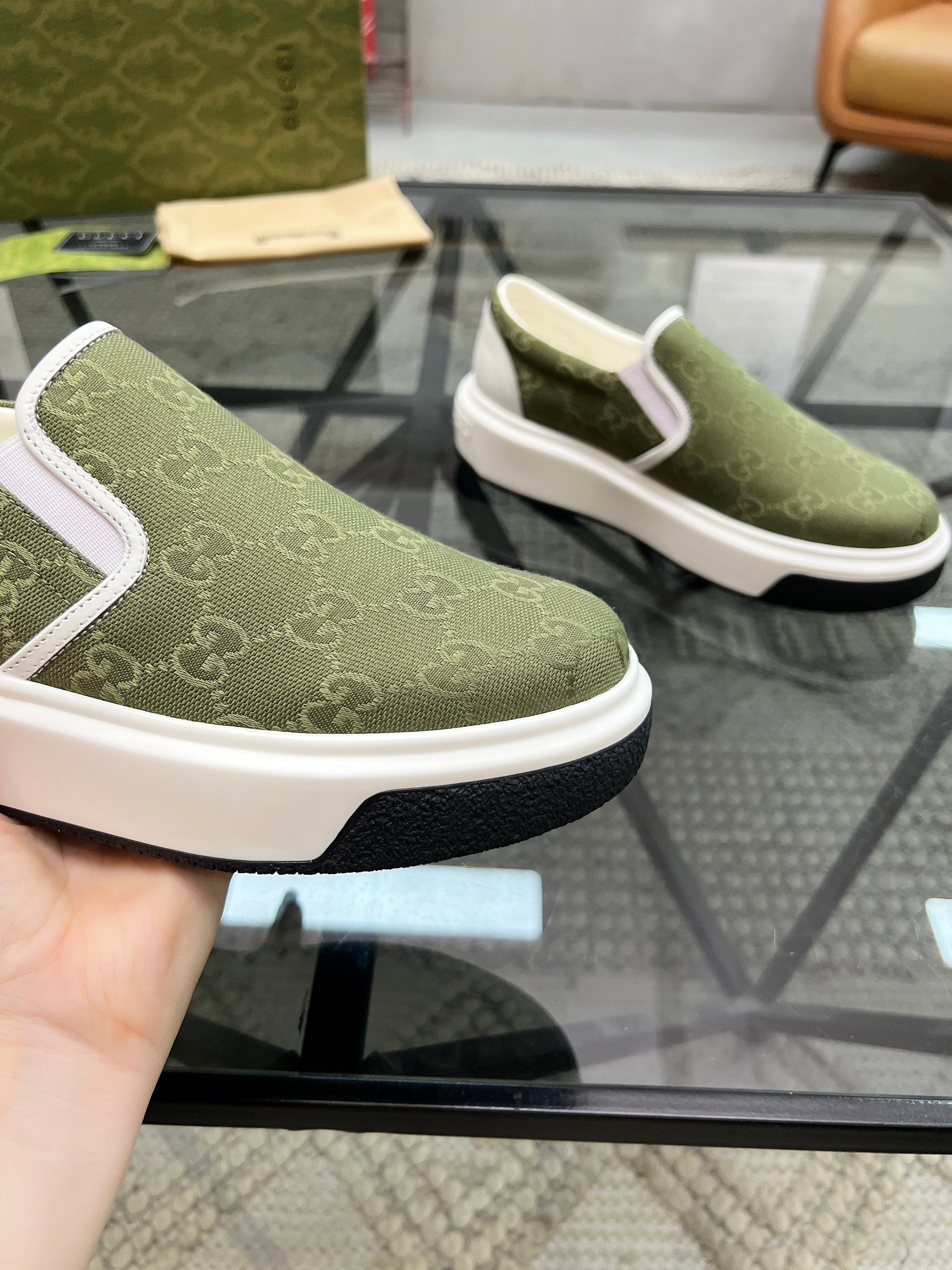 GG Men's Slip on Loafer Olive Green Printed Fabric 721525