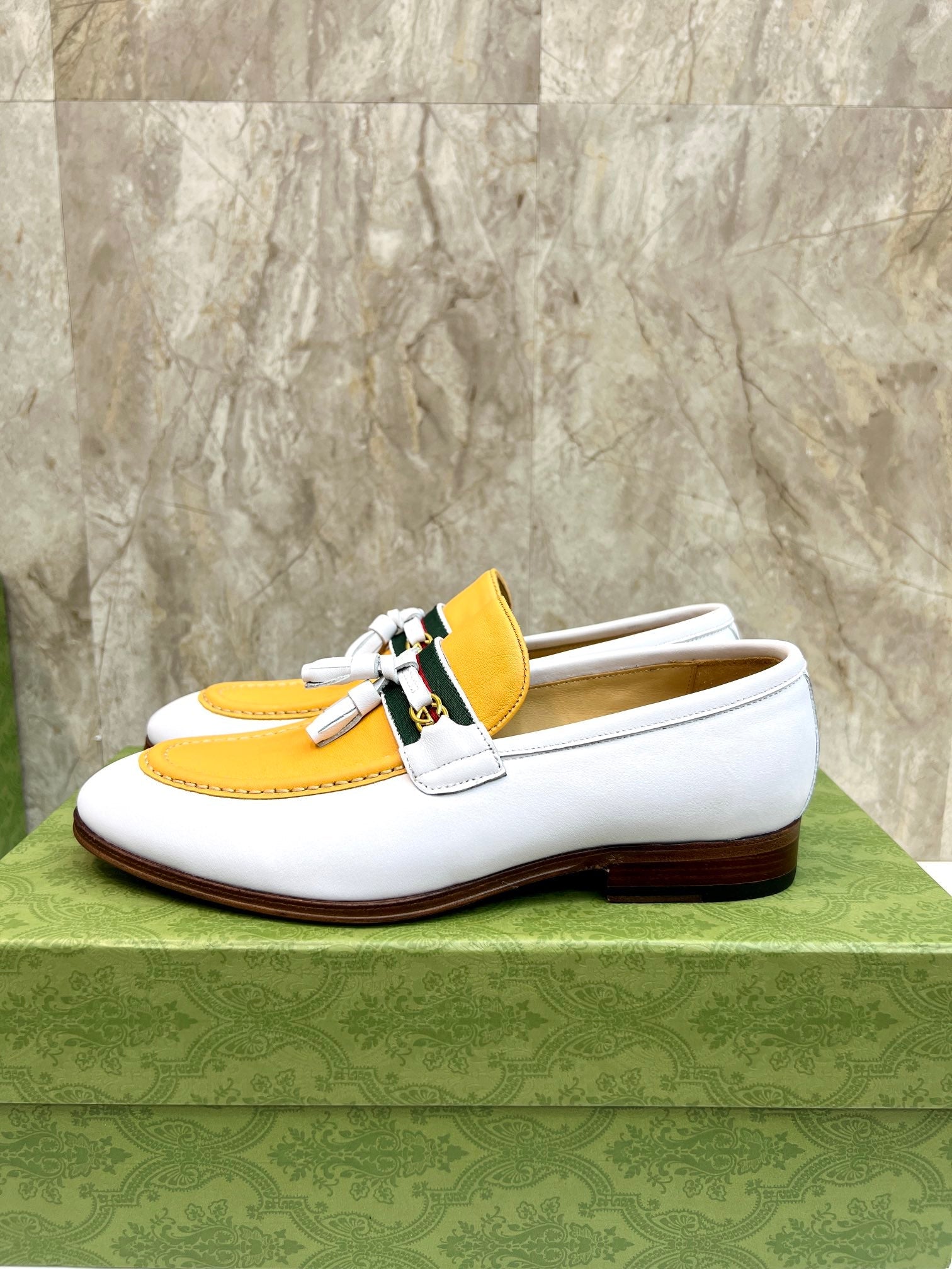 GG Men's Tassel Loafer Yellow White Cowhide 548744