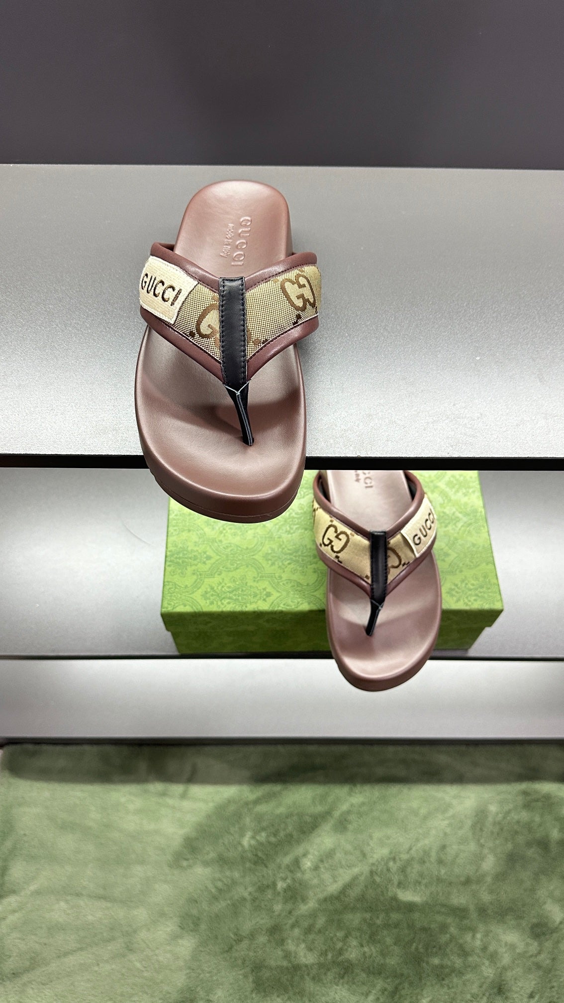 GG Men's Thong Sandals Brown Polyester Leather 547251