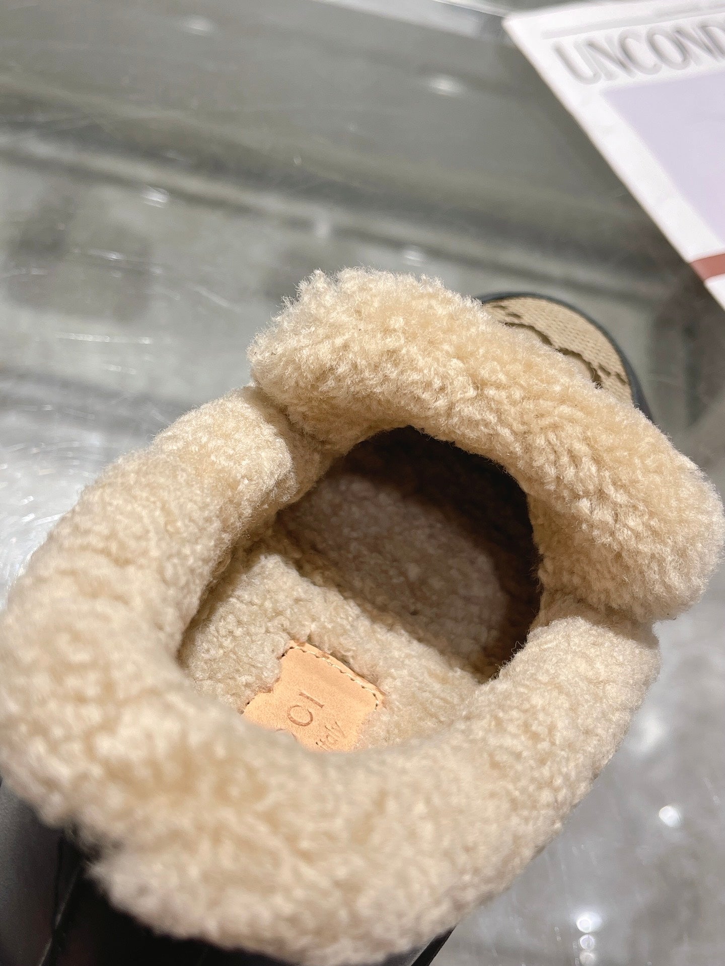 GG Snow Boots Black Calfskin Denim Wool 576248