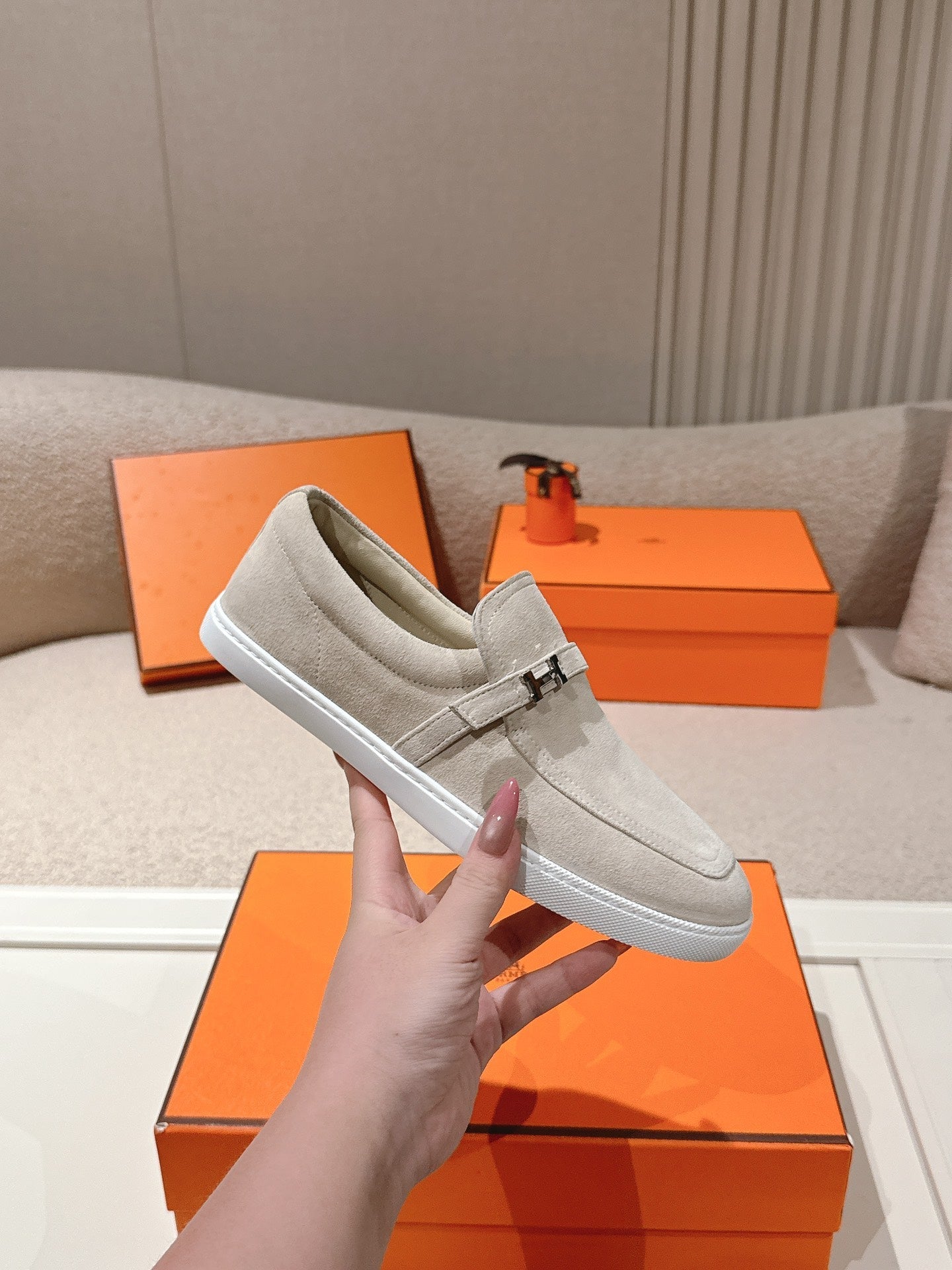 HM 25ss Loafers Light Beige Suede 577156