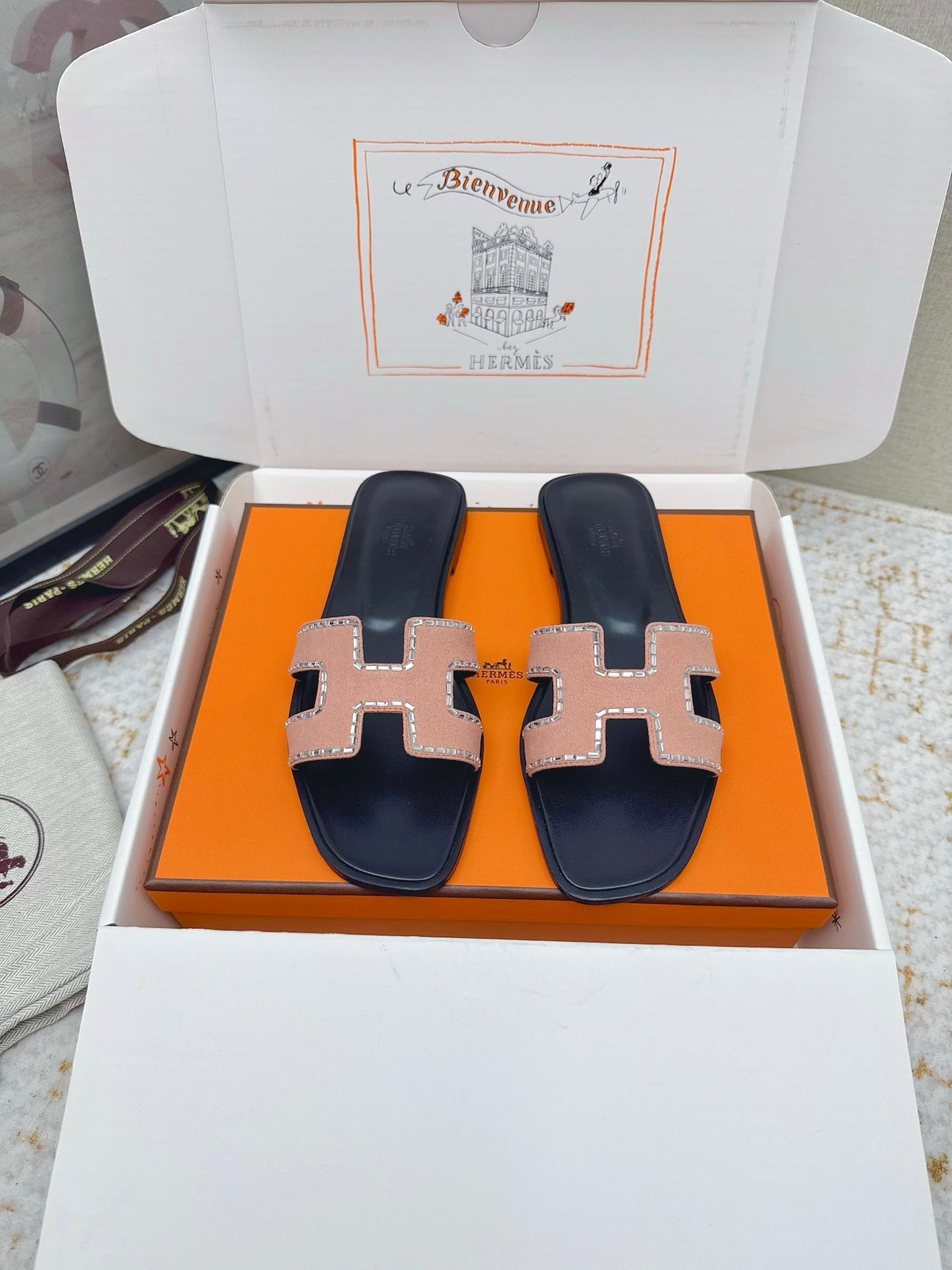 HM 26ss Oran Sandals Black Light Pink Suede Sheepskin 625237
