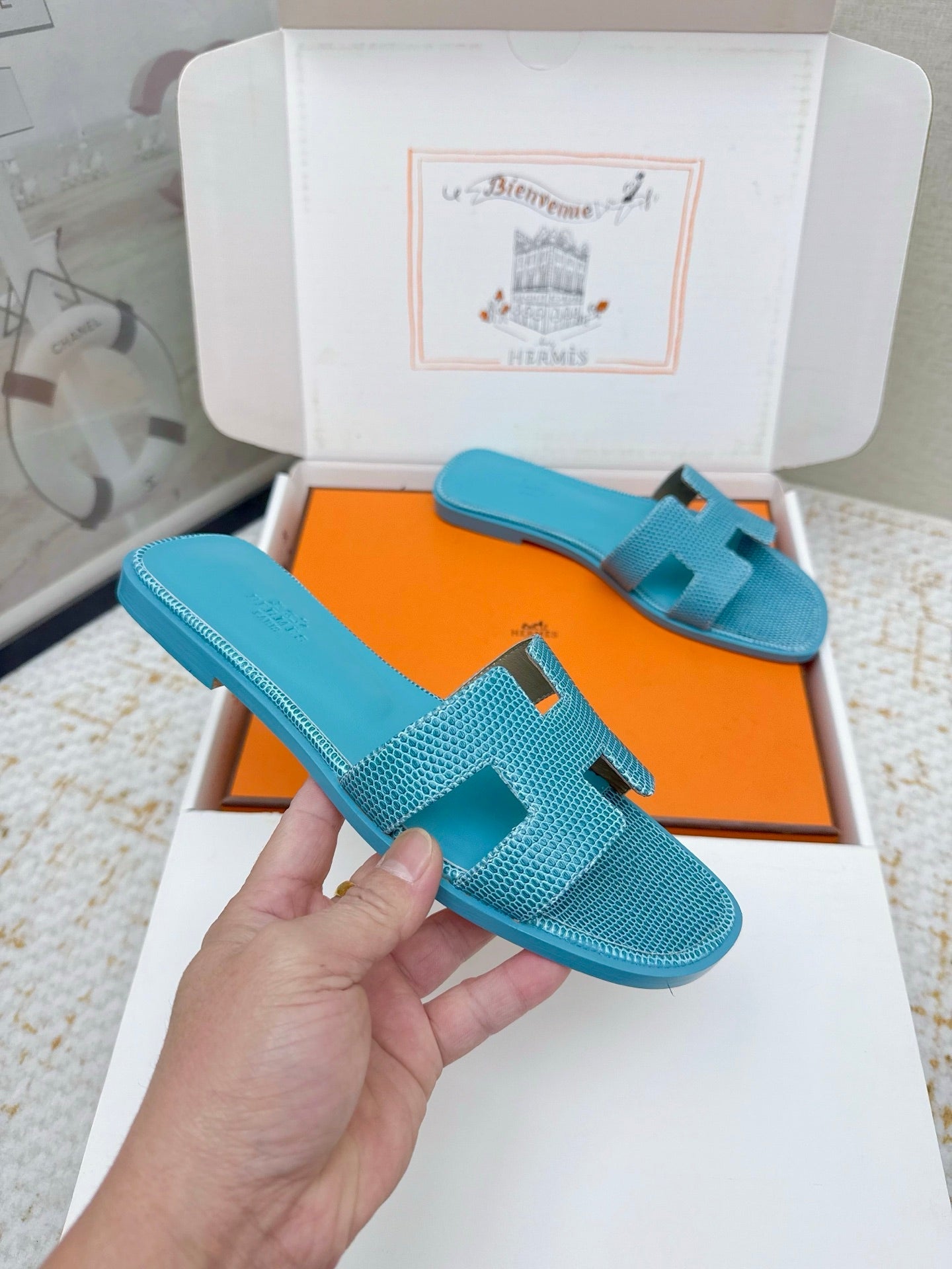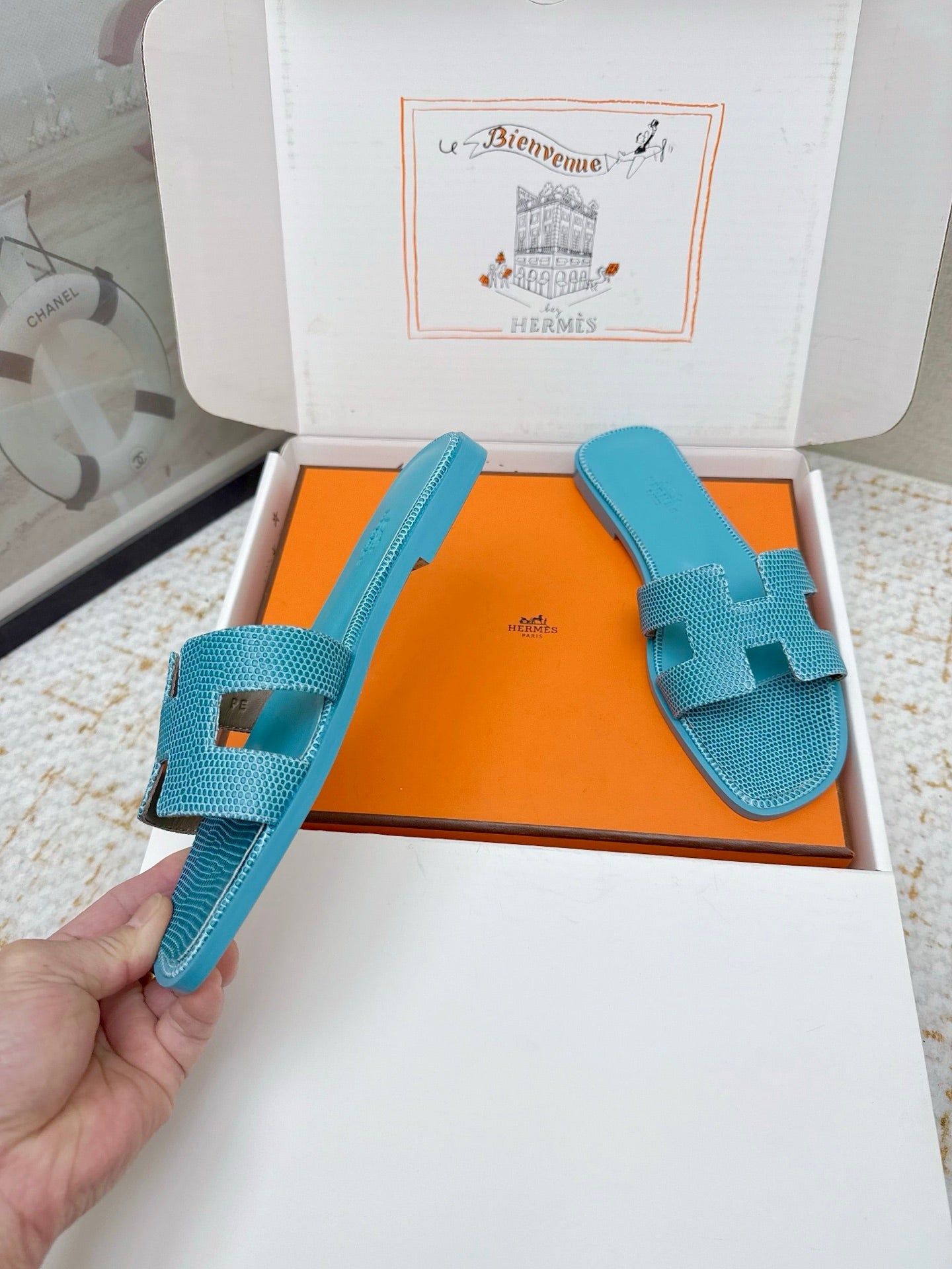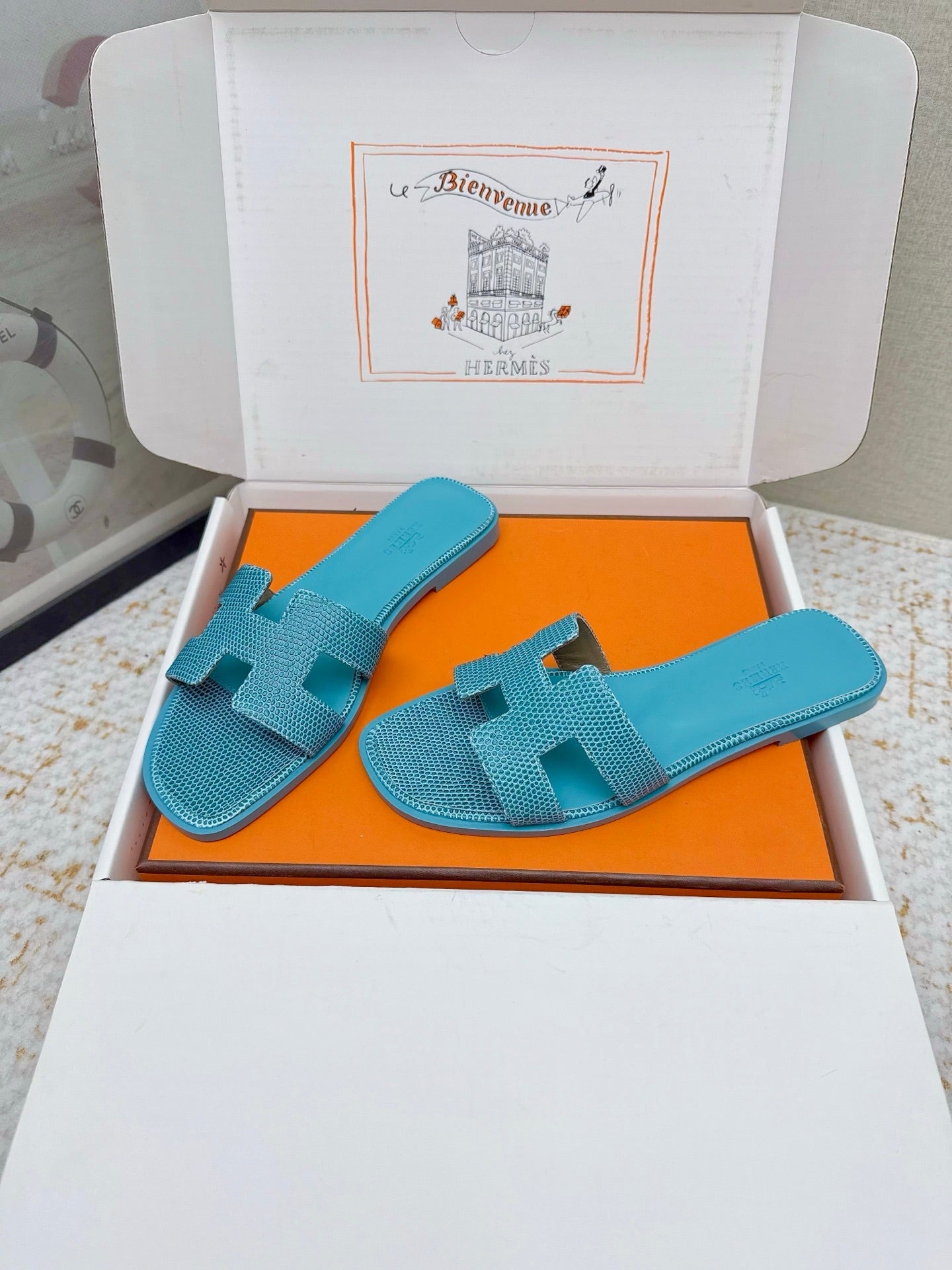 HM 26ss Oran Sandals Turquoise Cowhide 625050