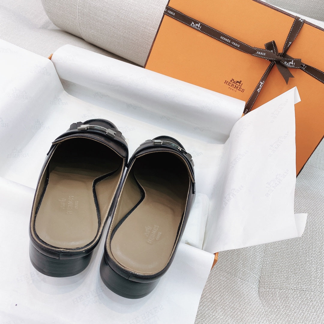 HM Buckle Tassel Mule Black Goat Leather 348025