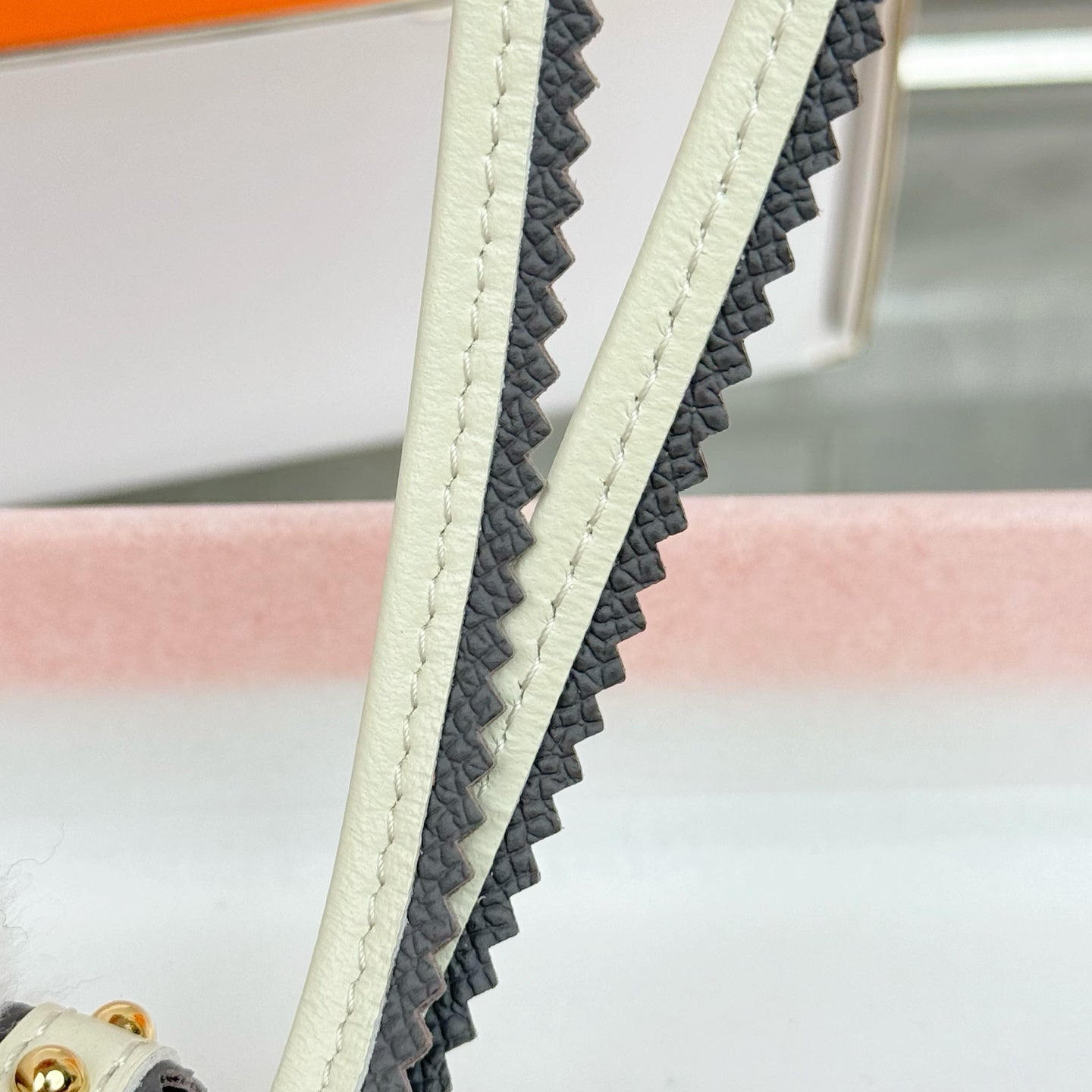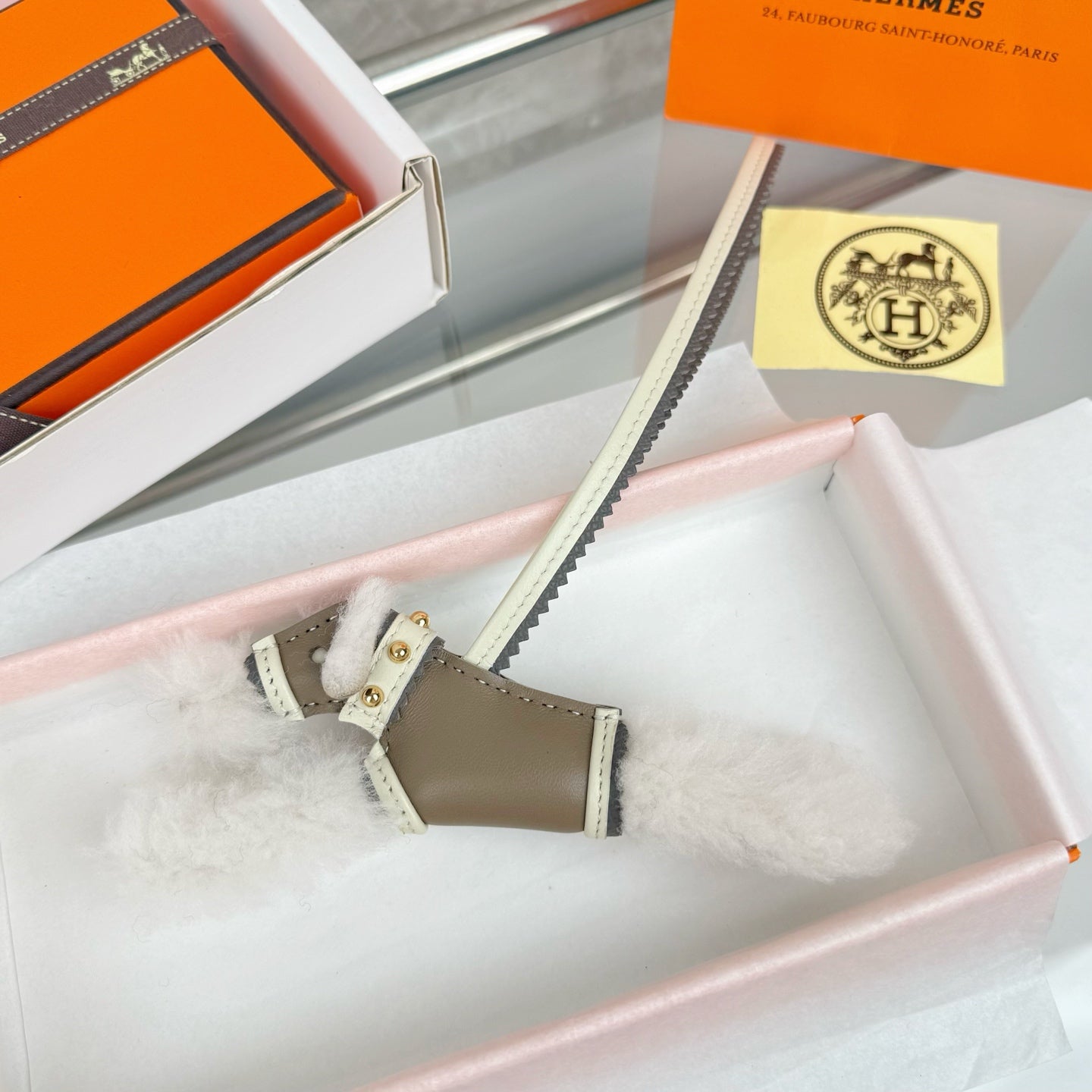 HM Budy Puppy Pendant Charm White Taupe Wool Cowhide