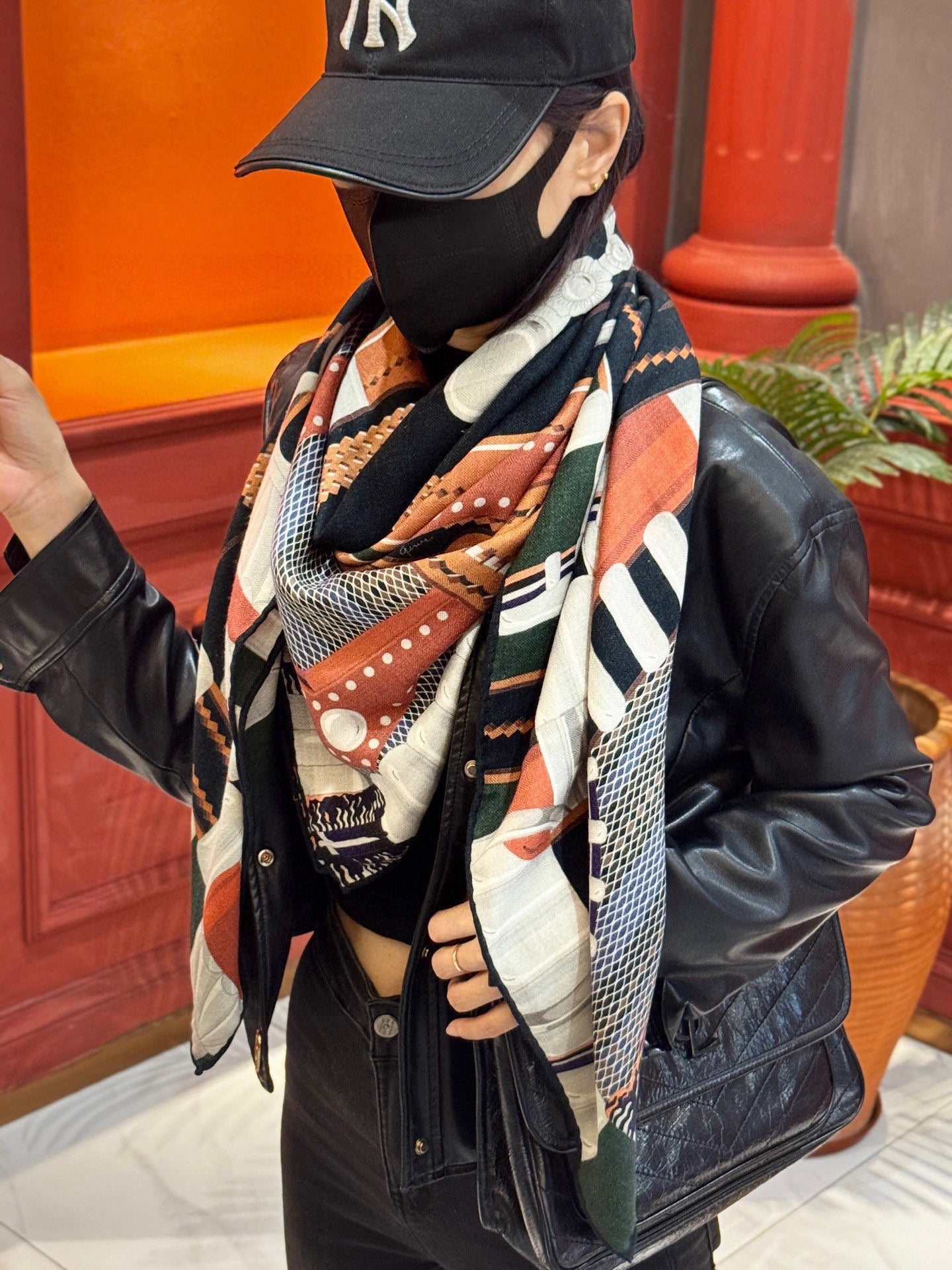 HM Dressage Tressage 140 CM Black Orange Colorful Cashmere And Silk 293243
