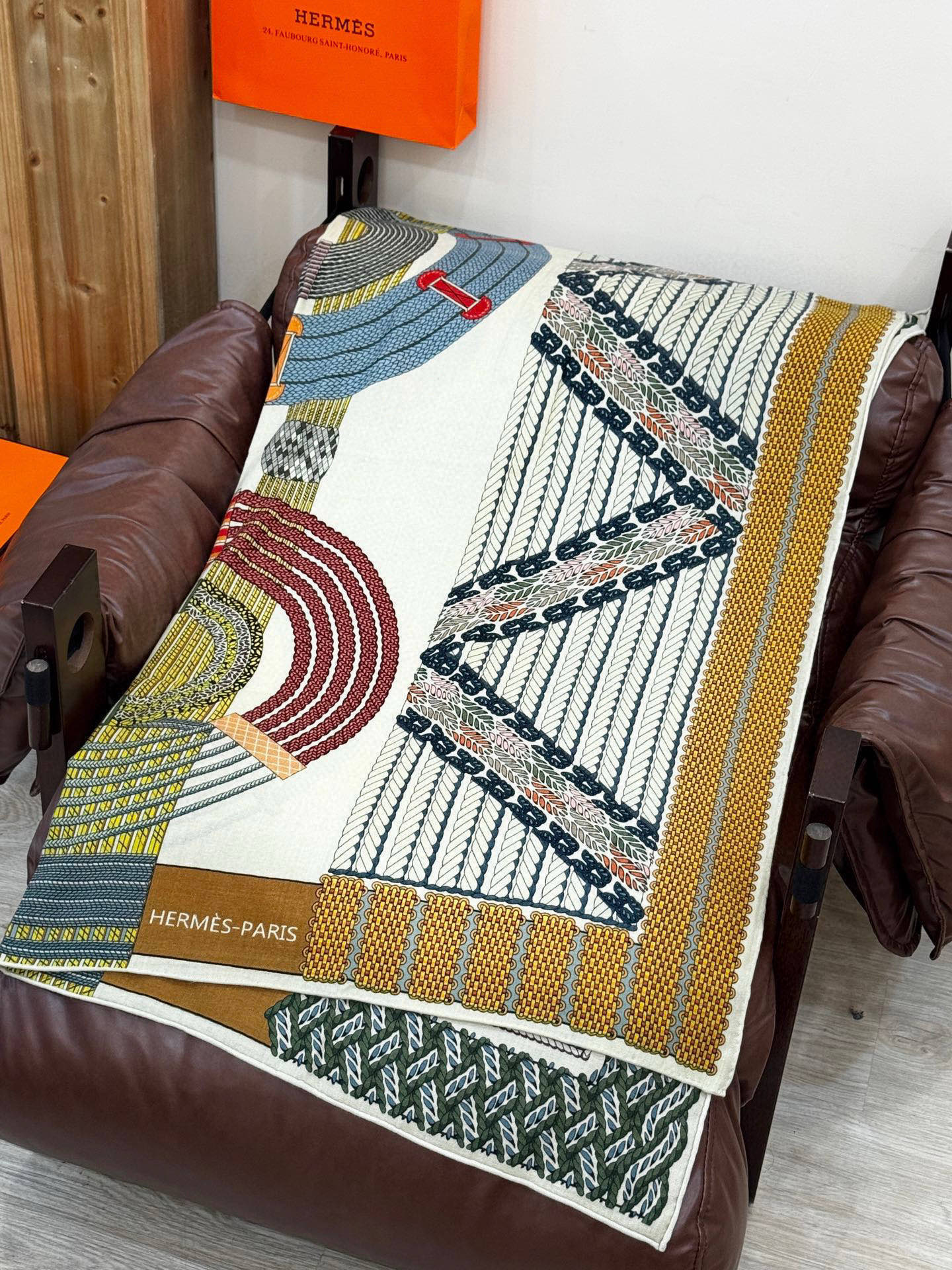 HM Dressage Tressage 140 CM Yellow White Colorful Cashmere And Silk 293223