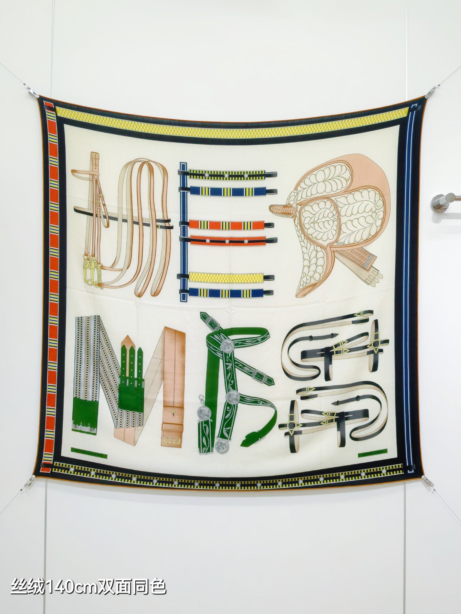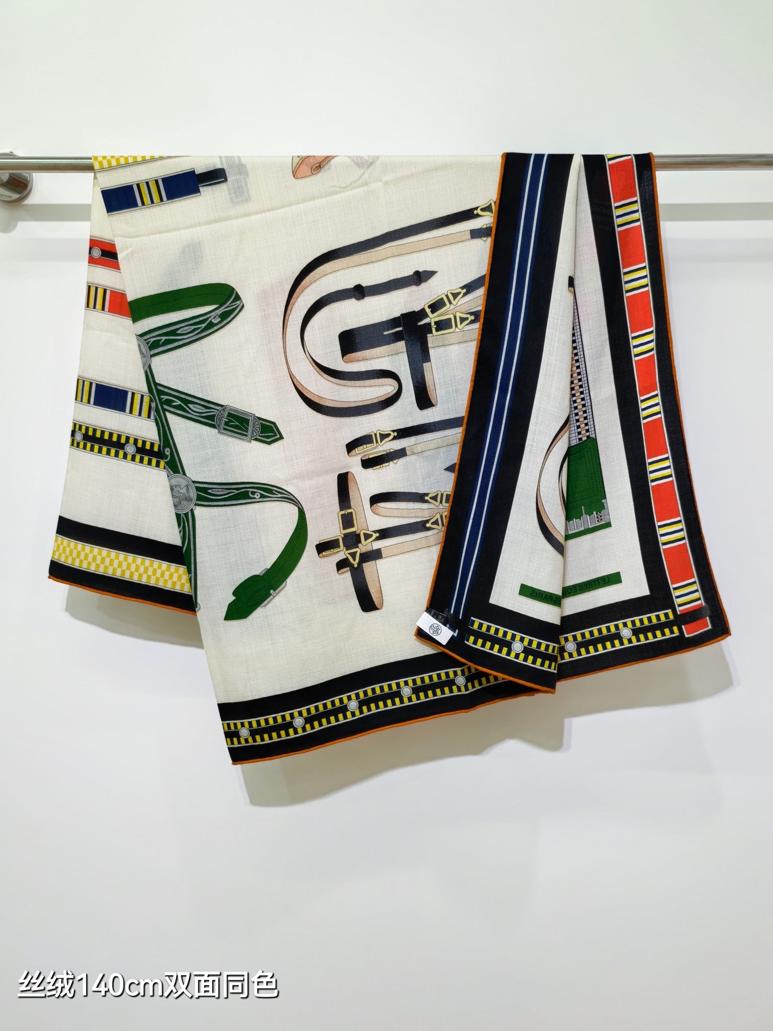 HM Equestrianism 140 CM Black White Colorful Cashmere and Silk 293103