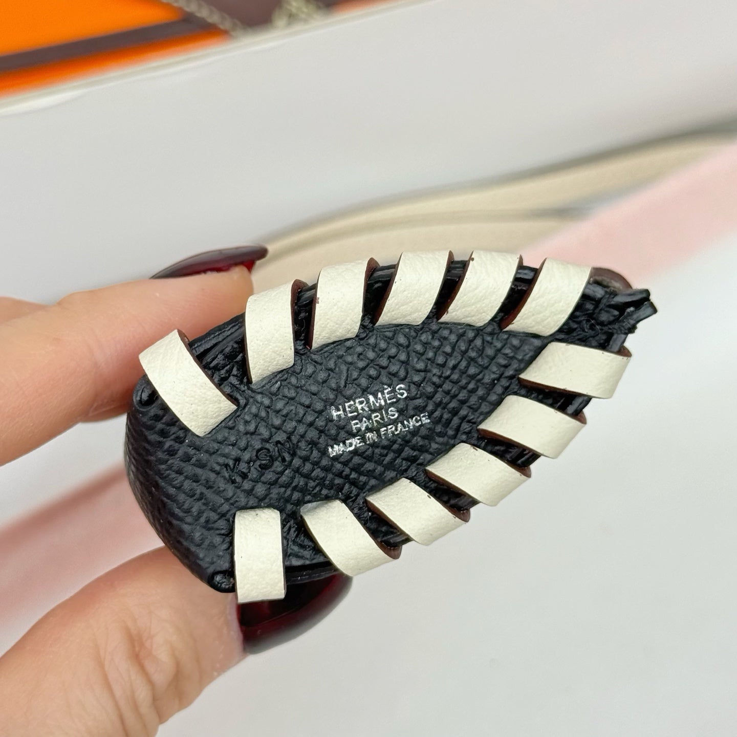 HM Horse Head Charm Black White Calfskin