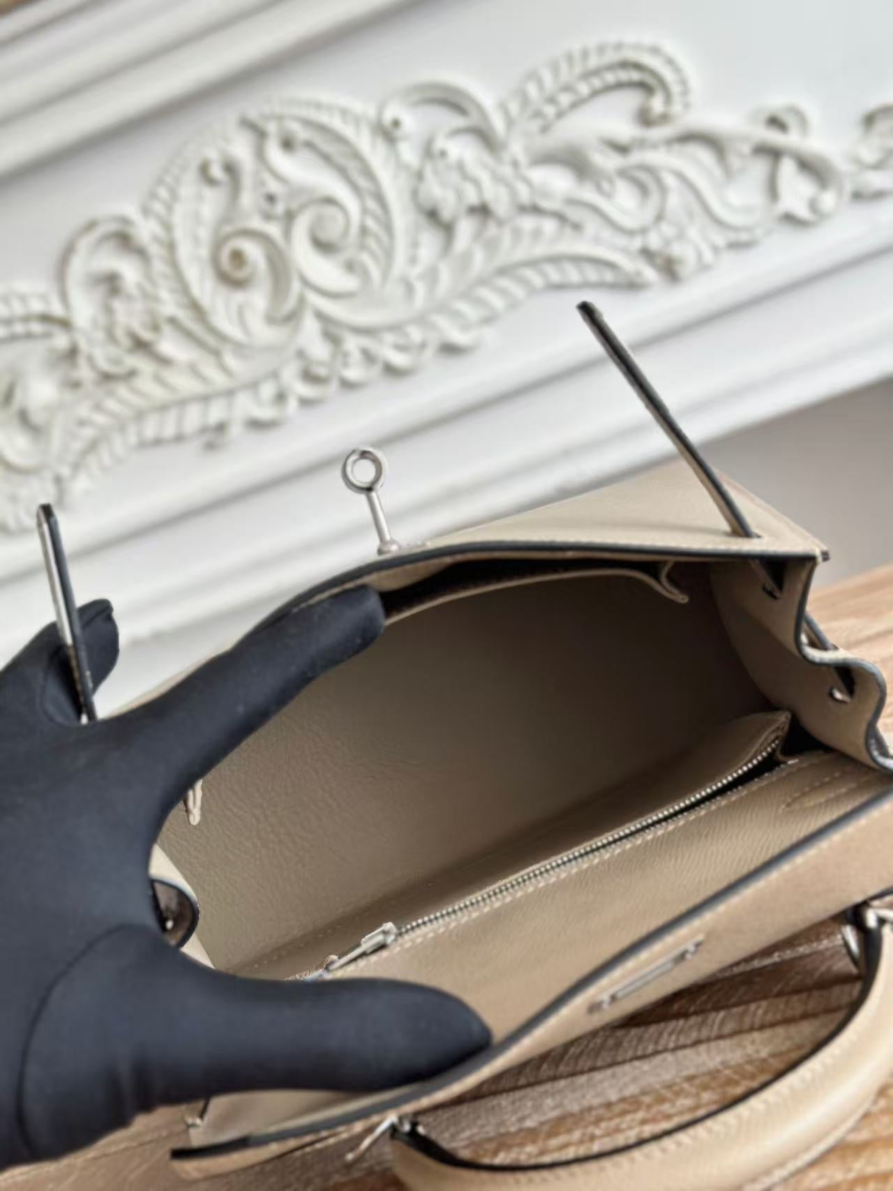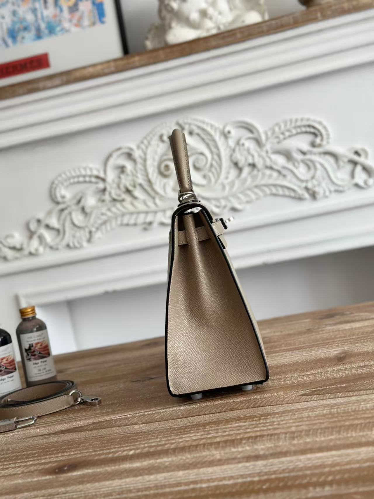 HM KELLY 25CM GREY EPSOM LEATHER SILVER HARDWARE