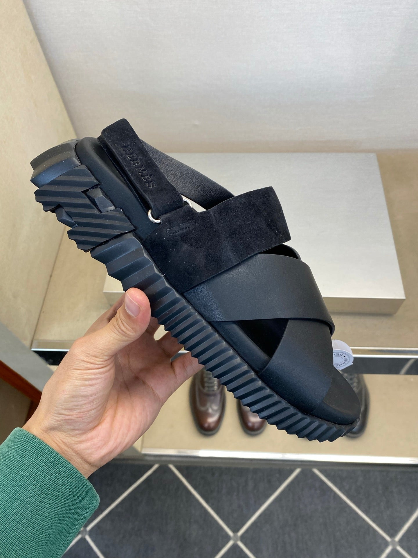 HM Men's Electric Sandals Black Suede Calfskin 602591