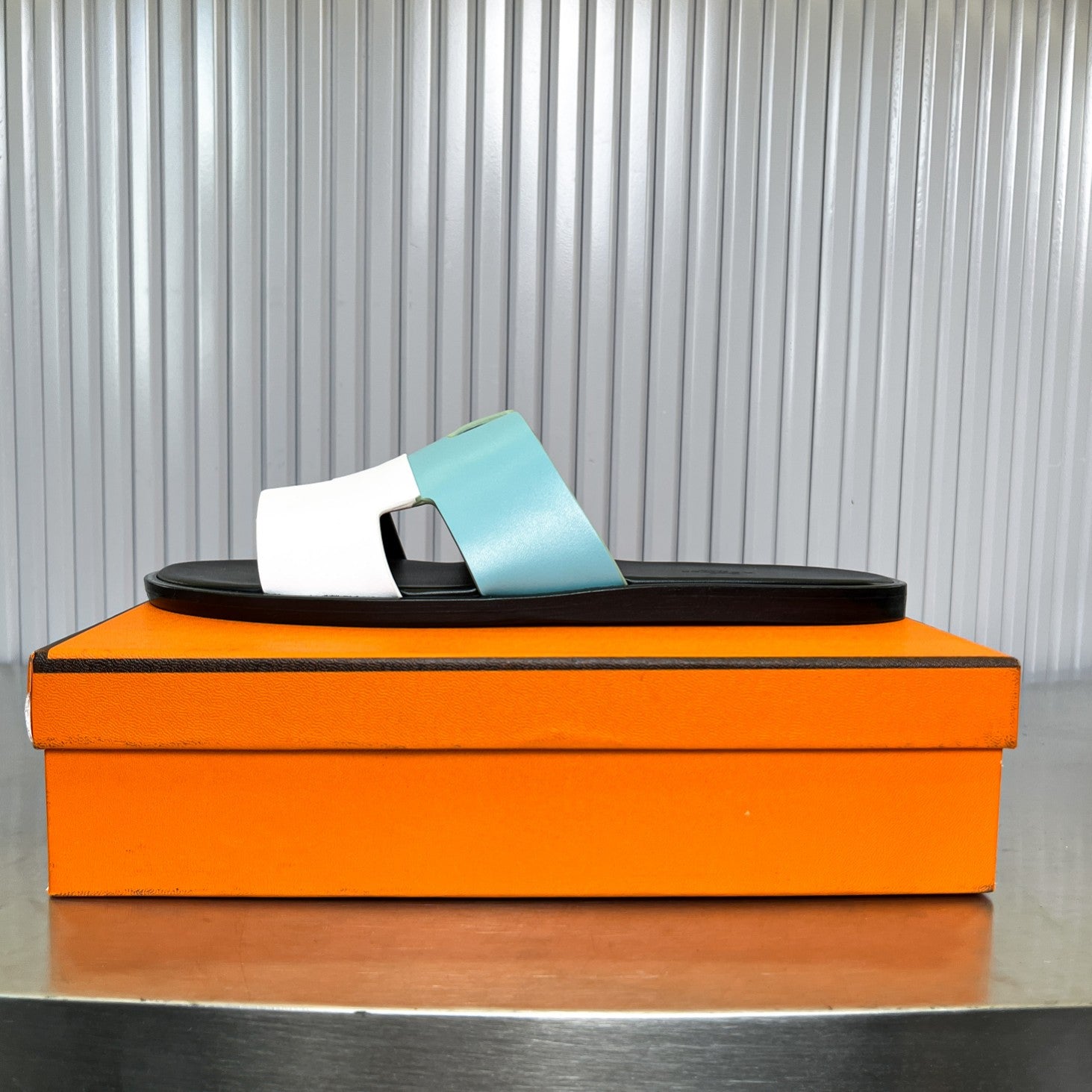 HM Men's Izmir Slide White Mix Blue Cowhide 588512
