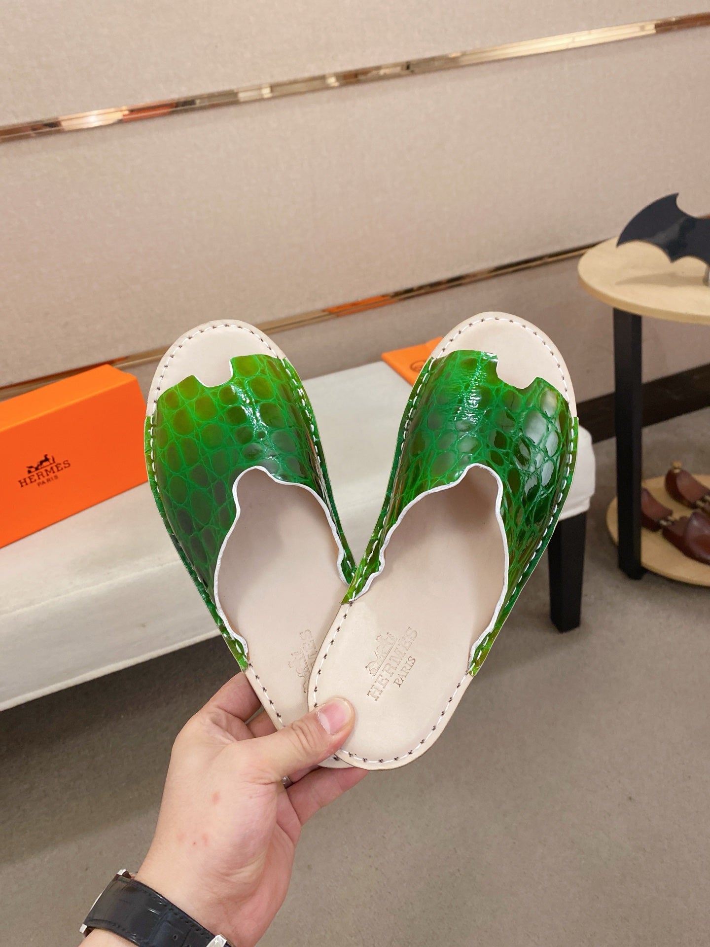 HM Men's Slide Green Cowhide 645105