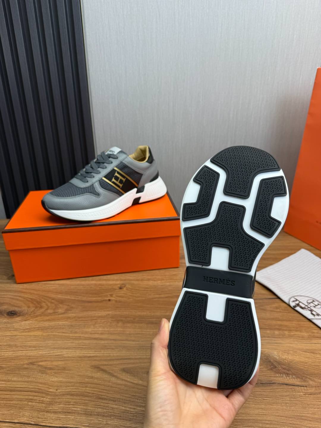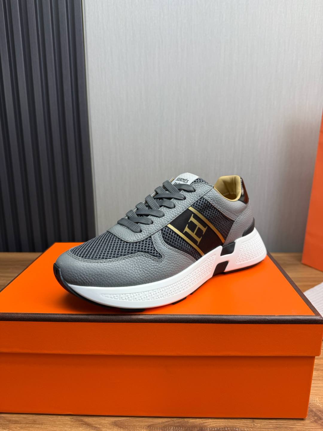 HM Men's Sneaker Grey Mesh Cowhide 519227