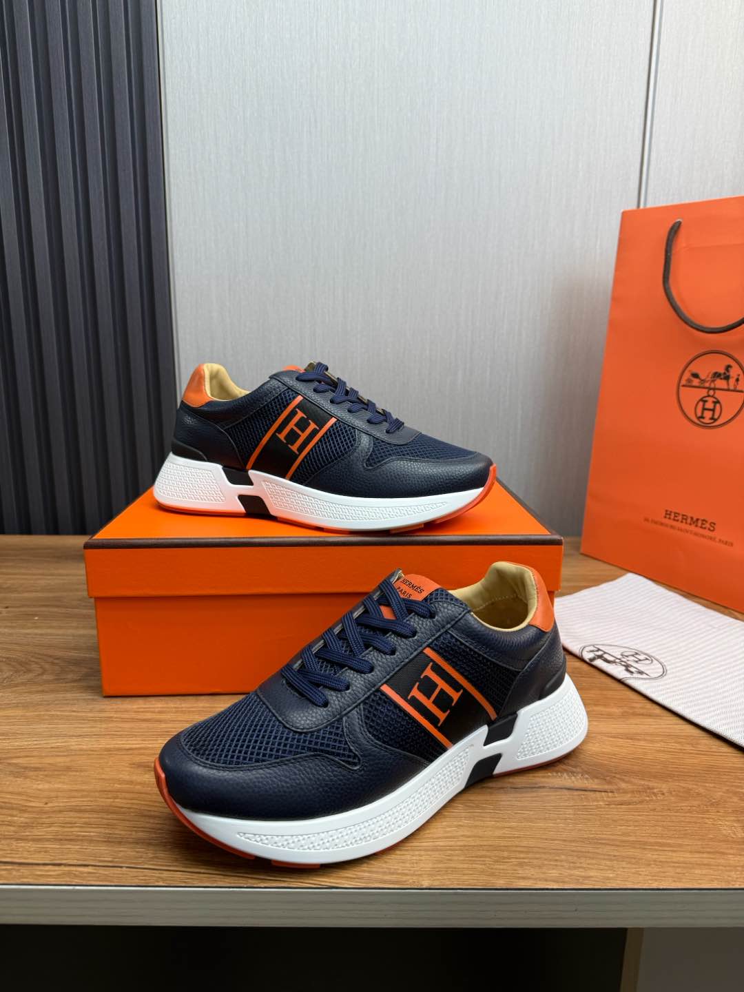 HM Men's Sneaker Navy Blue Mesh Cowhide 519228