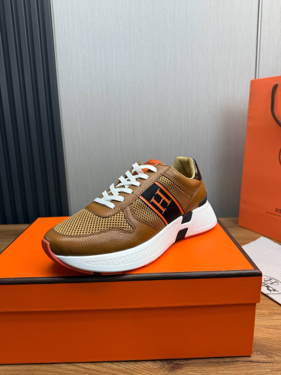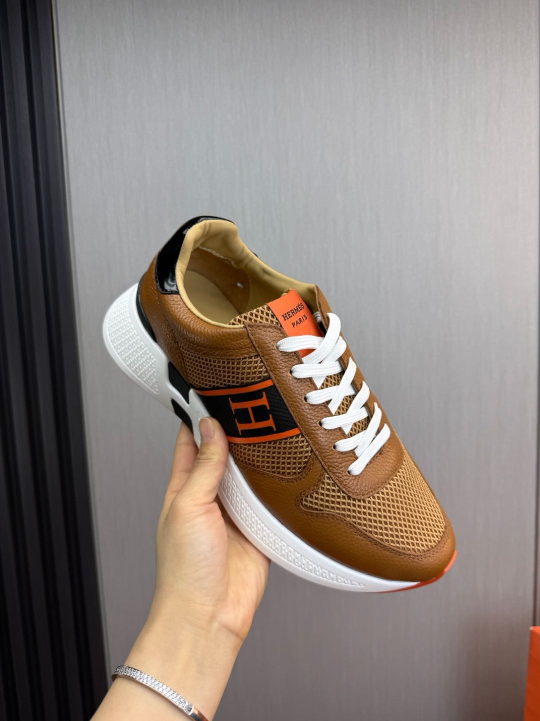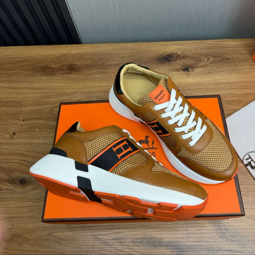 HM Men's Sneaker Brown Mesh Cowhide 519229
