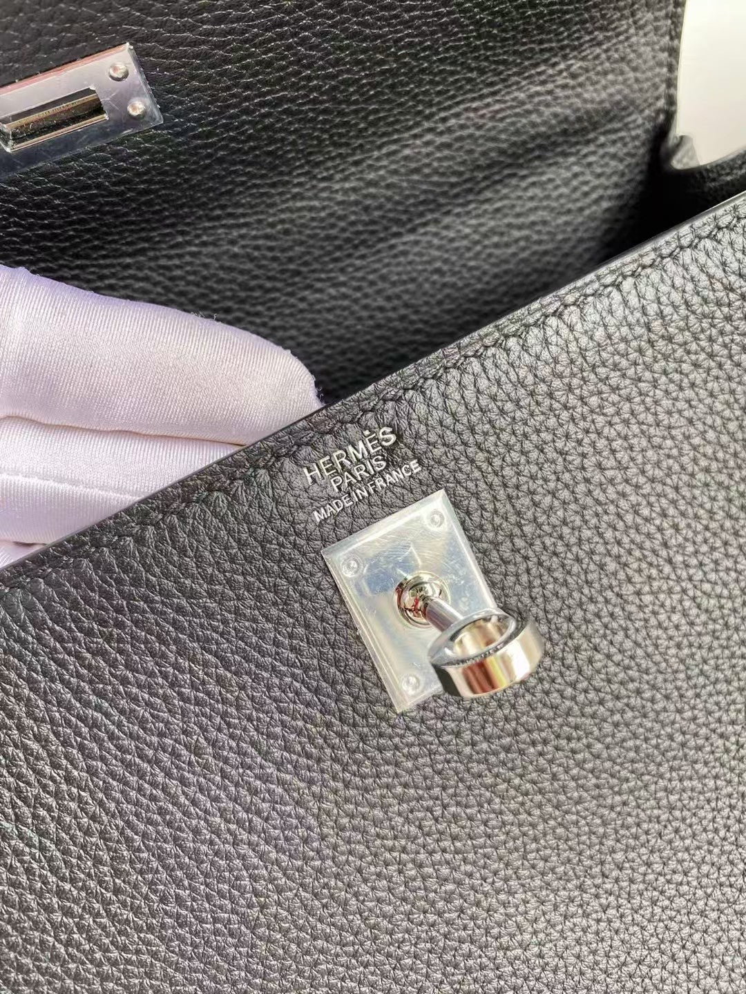 HM Mini Kelly 20cm Black Togo Leather Silver Hardware