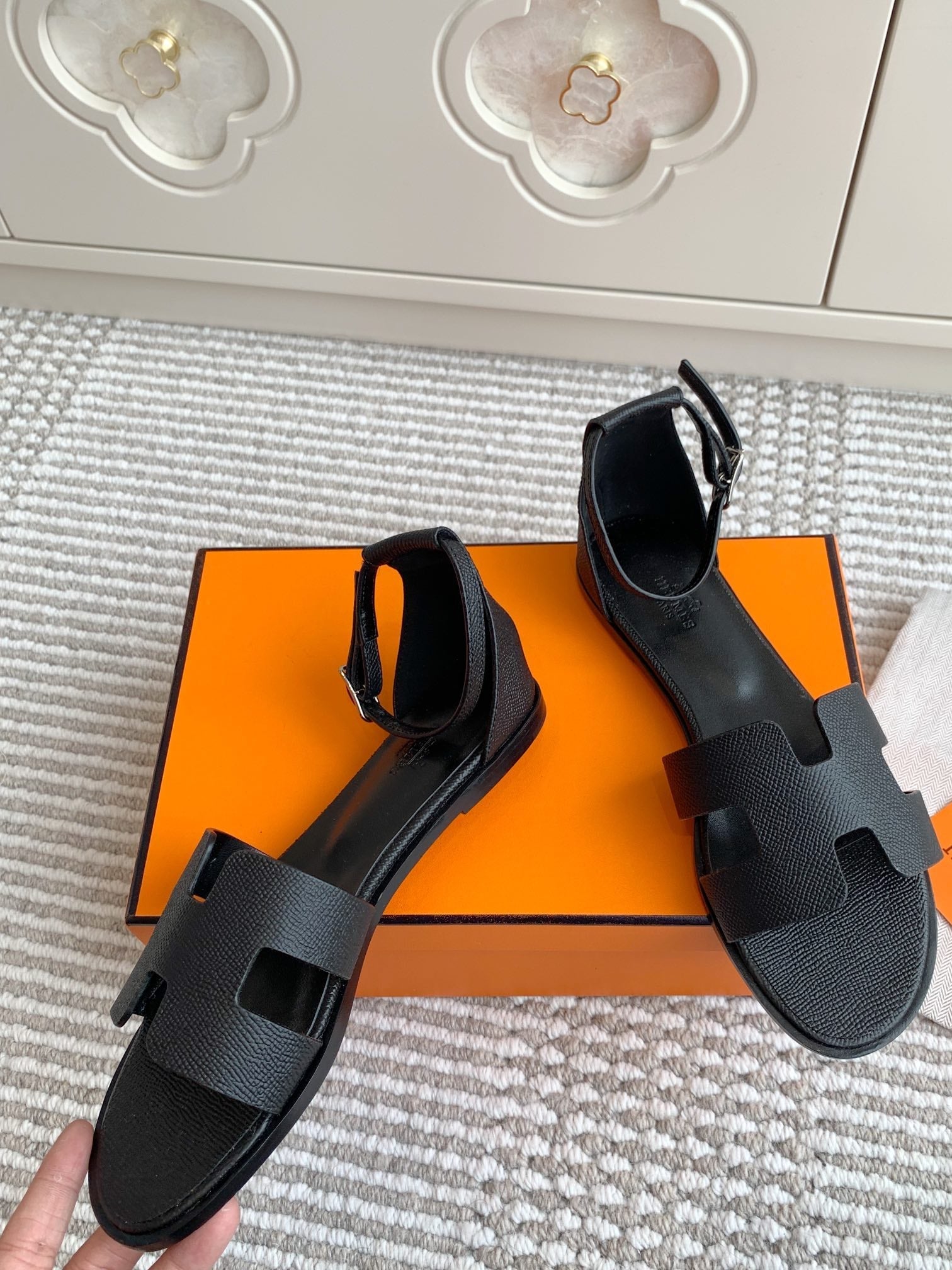 HM Santorini Sandal Black Cowhide 291382