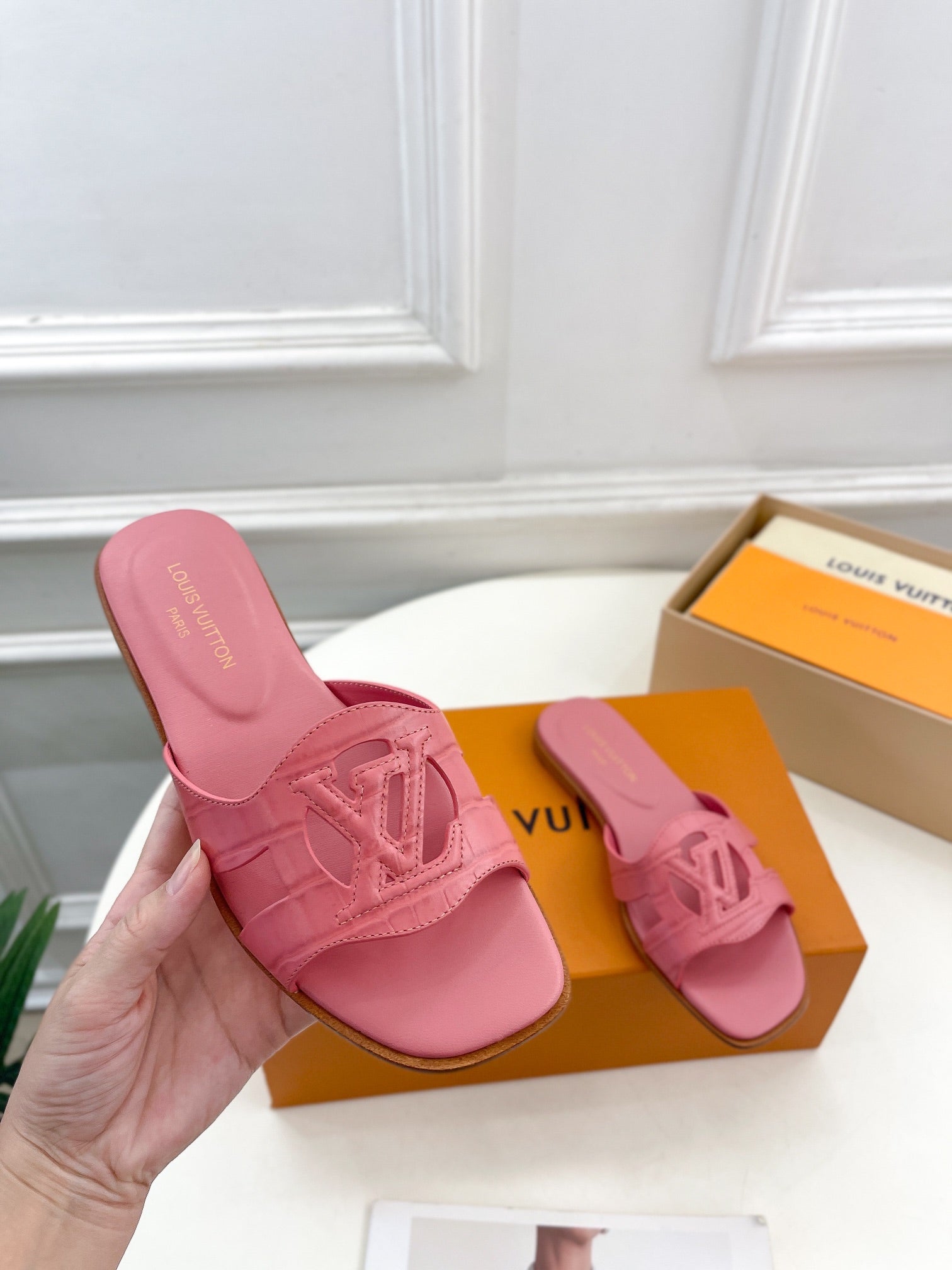isola flat mule pink calfskin