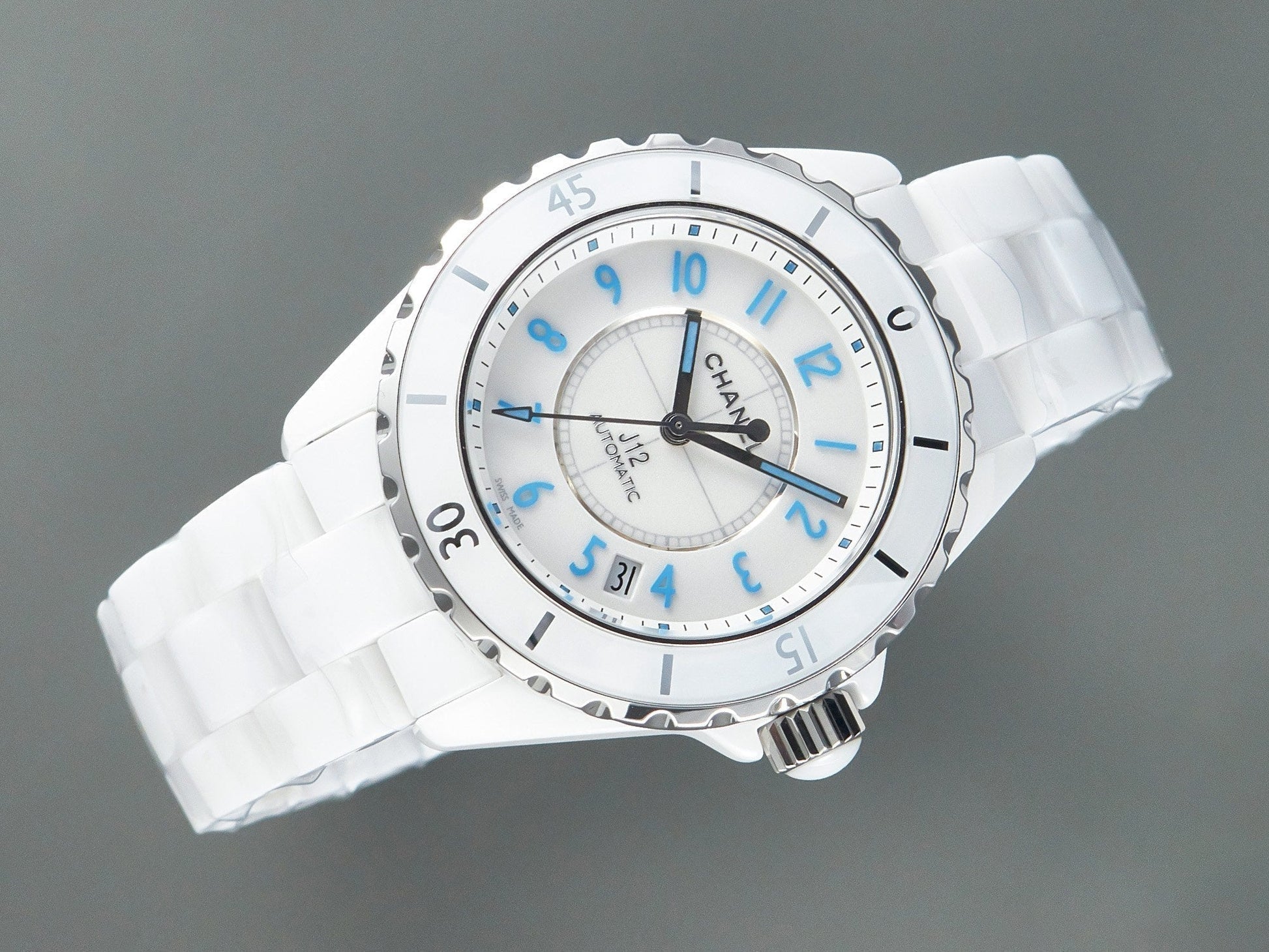 J12 Date Automatic White Ceramic Blue Numerals White Dial