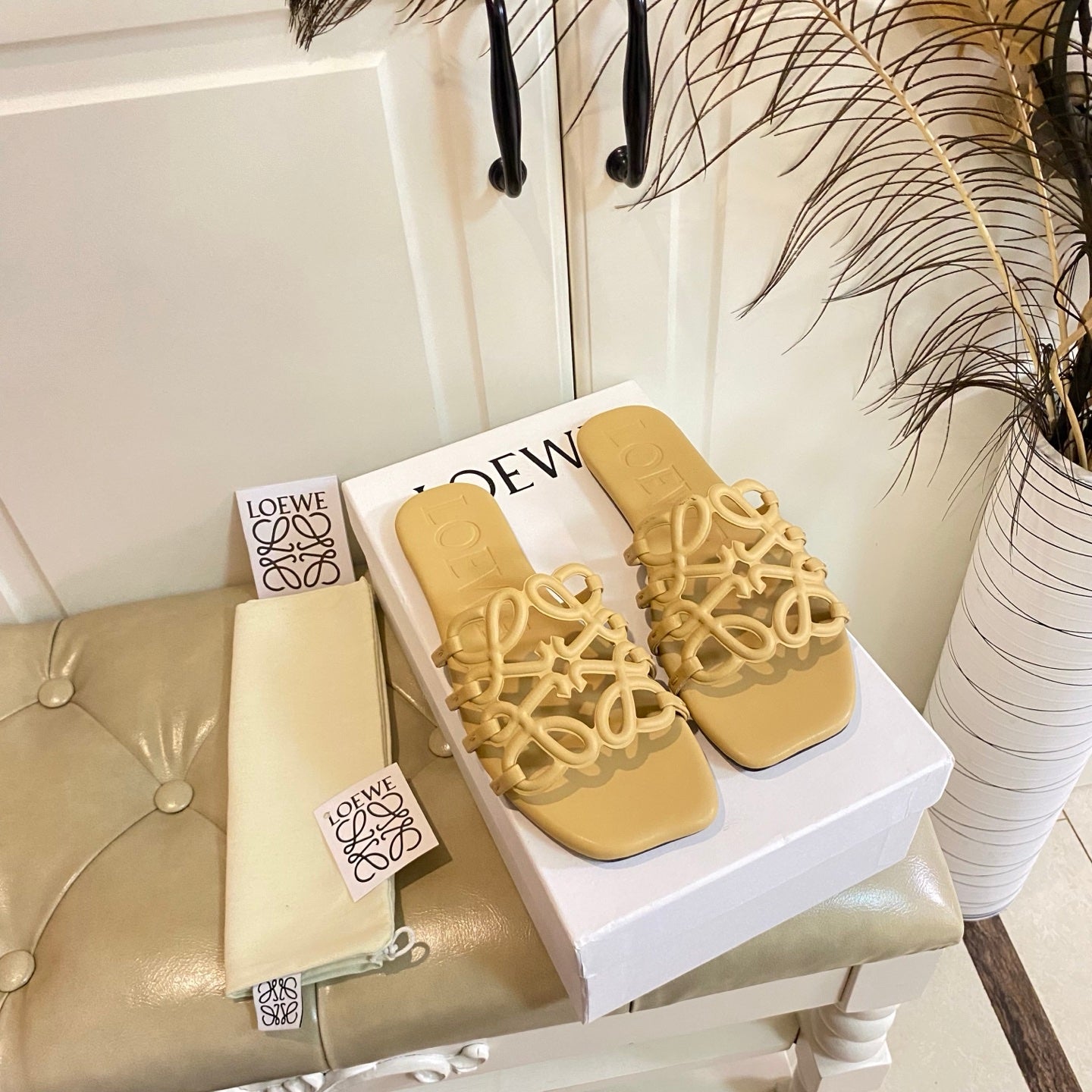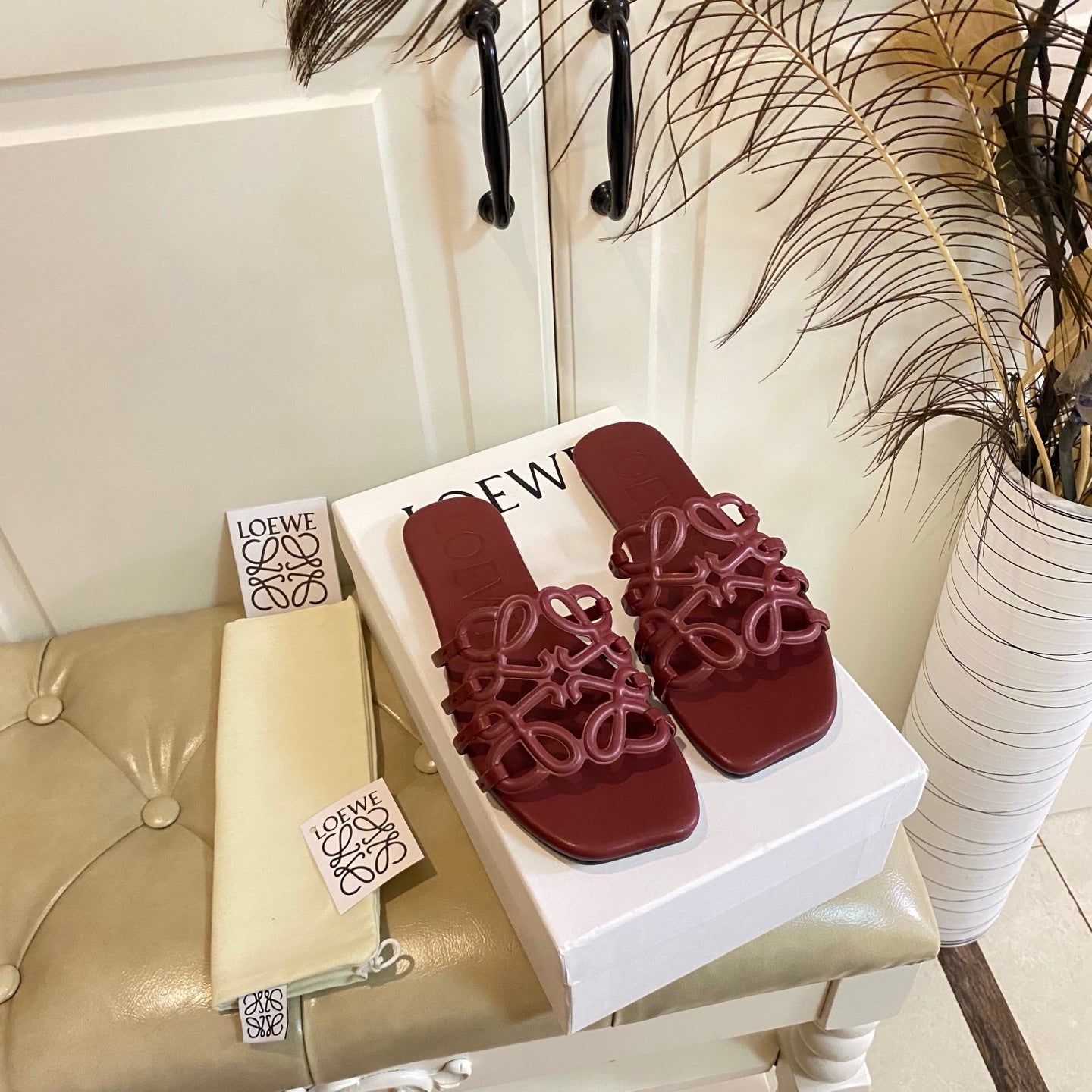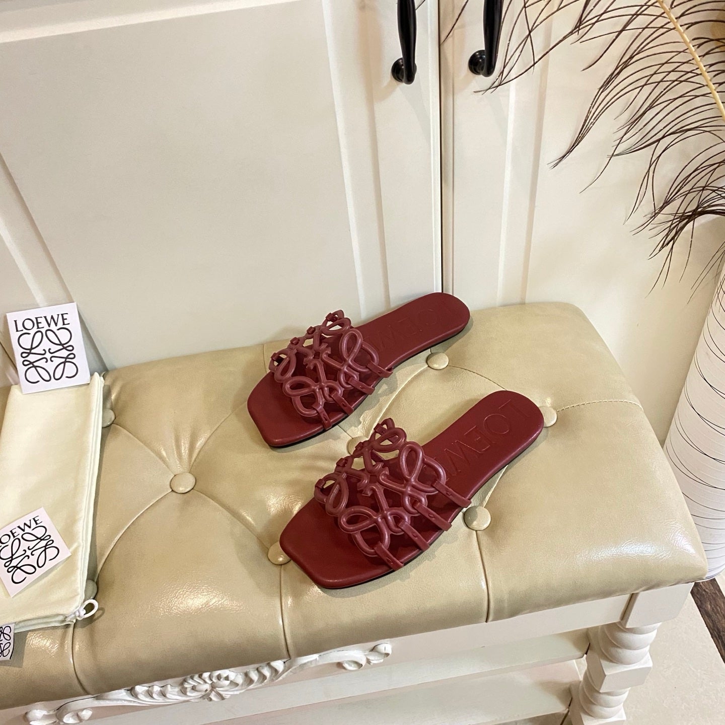 Loewe Petal Anagram Leather Slides Multicolor