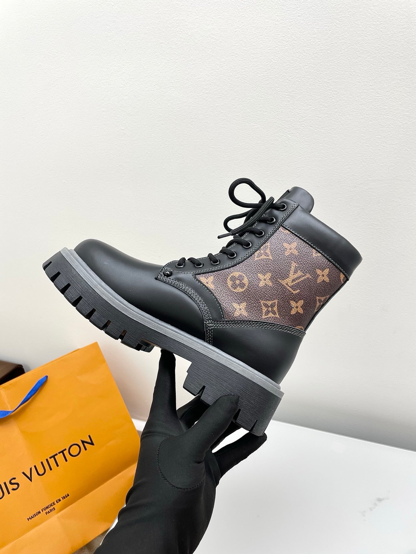 LV 25 Ankle Boots Black Brown Monogram Cowhide 576225