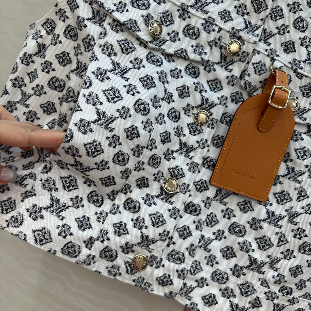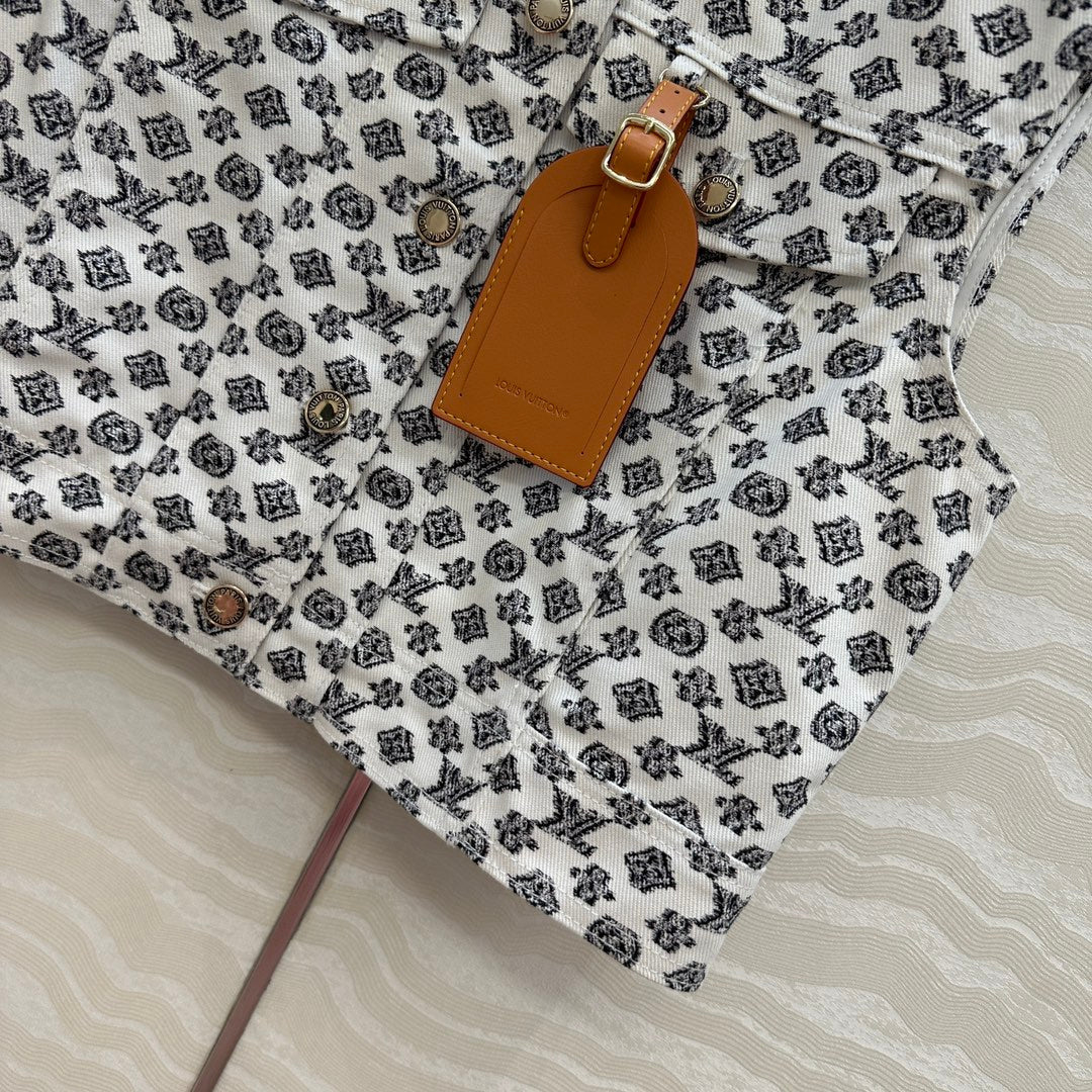 LV 25 Modern Logo Denim Vest Jacket Black White Poliester