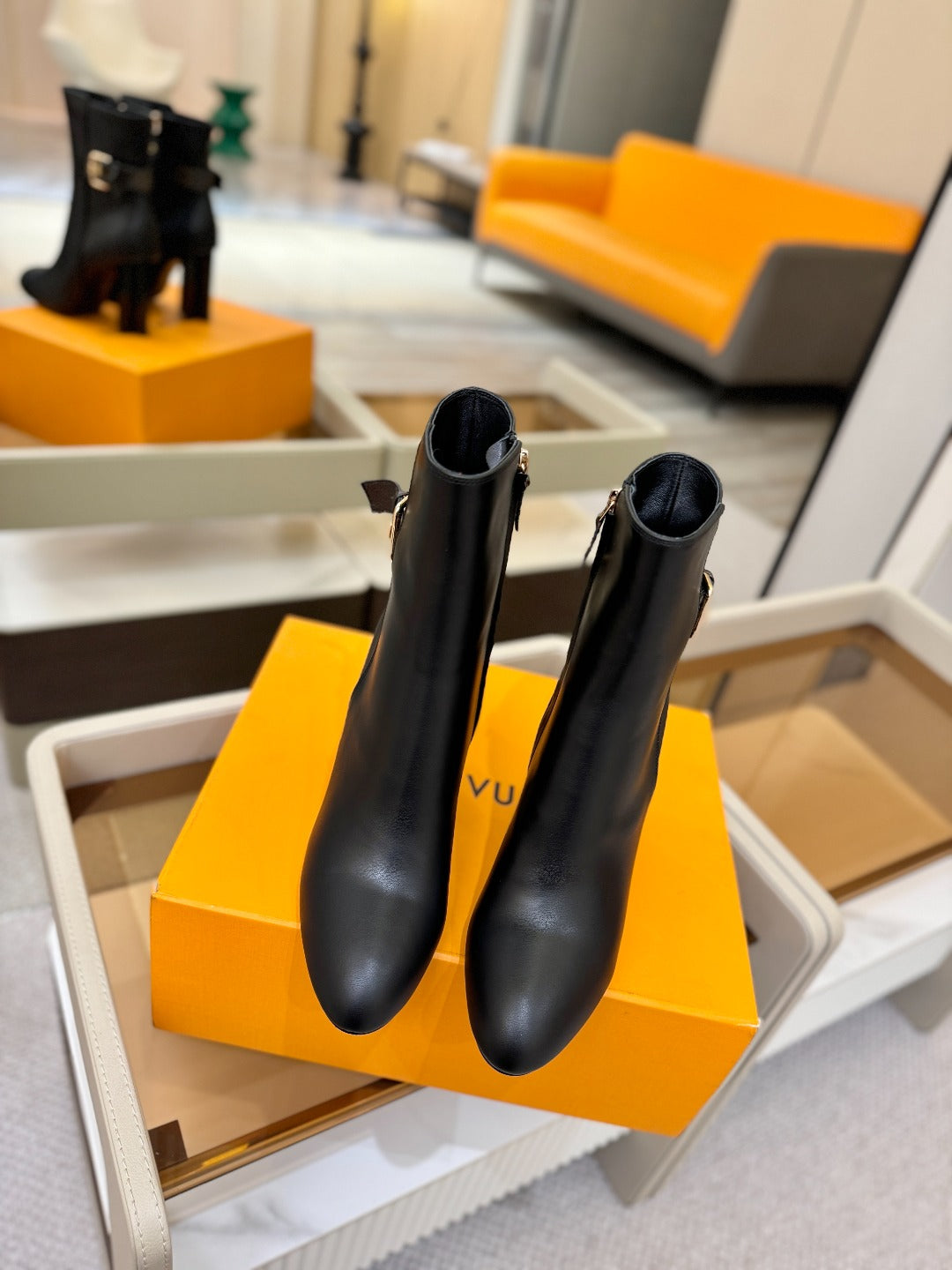 LV 25 Runway Ankle Boots 100 Black Calfskin Mix Belt 573869