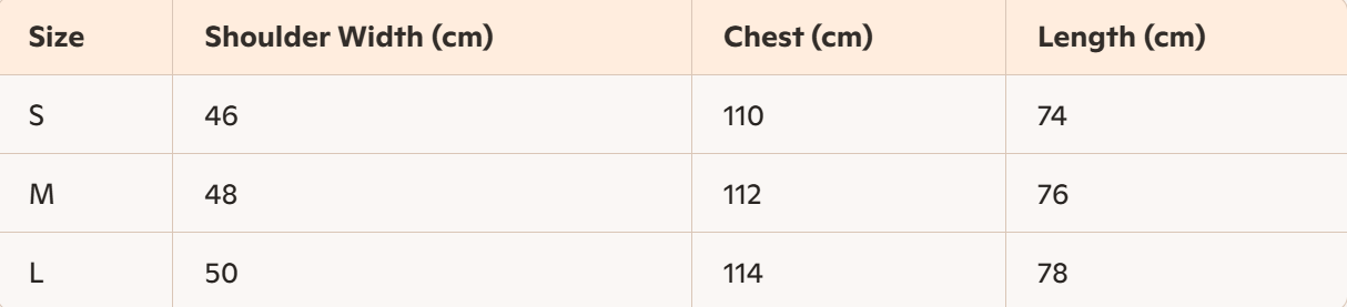 - Size : S, M,L
