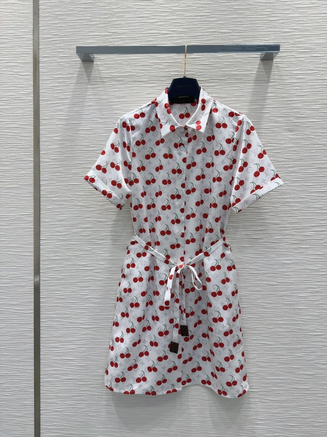 LV 25S Cherry Printed Dress White Red Poliester