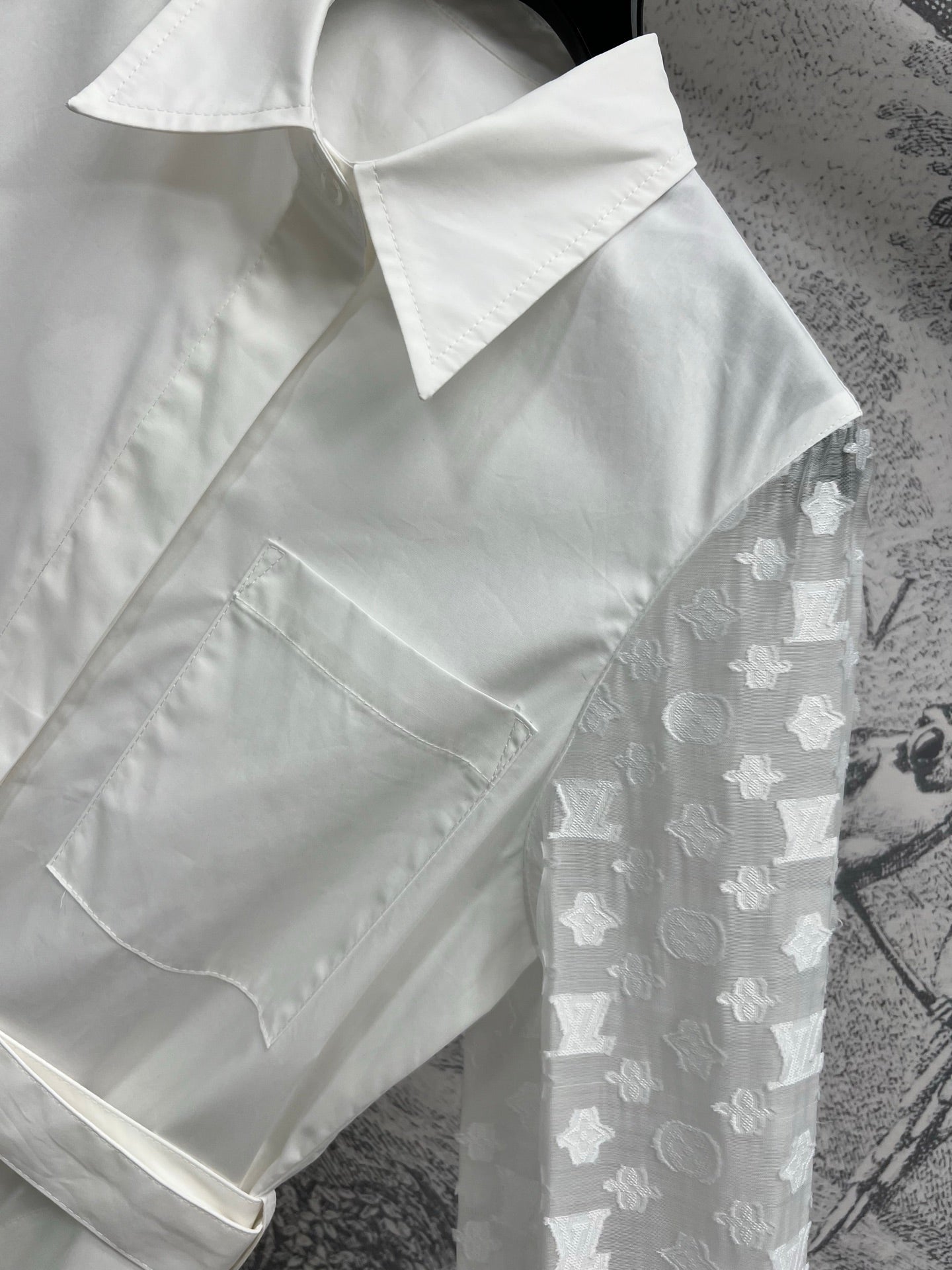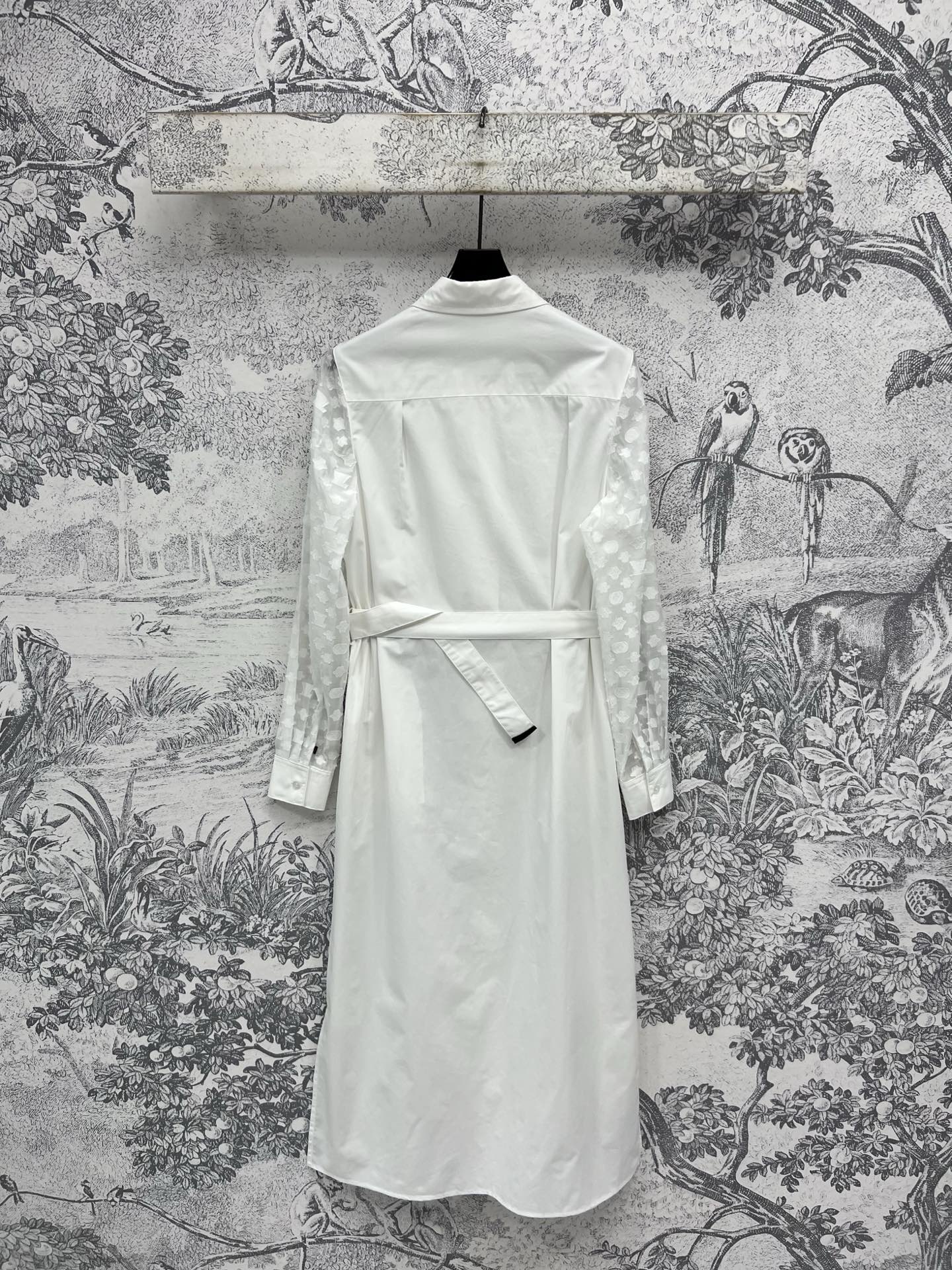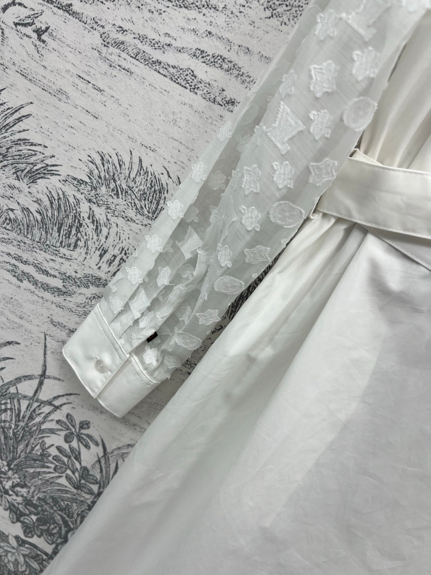 LV 25 Splicing Perspective Jacquard Monogram Sleeve Dress White Cotton
