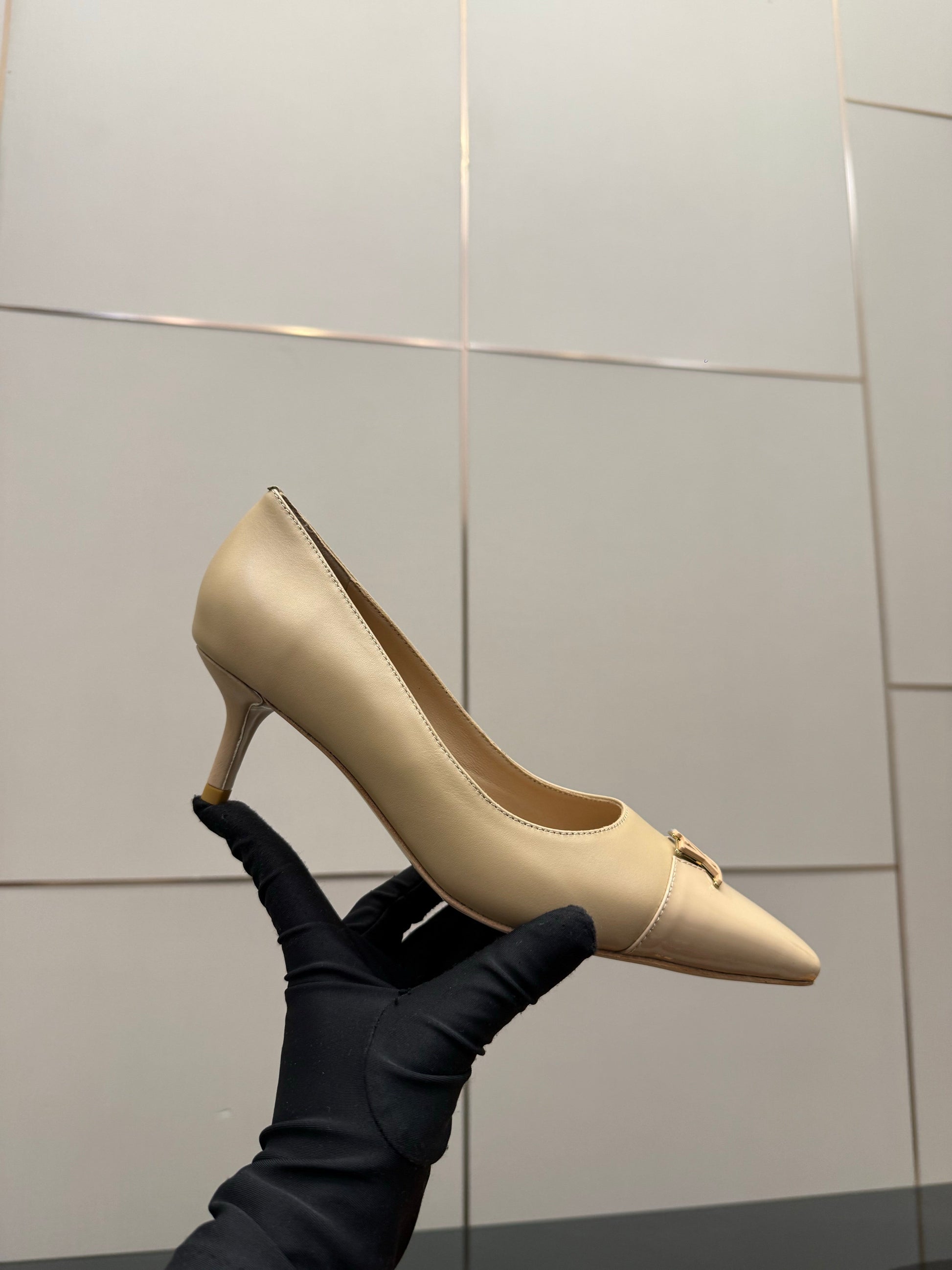 LV 26ss Heel Pump 55 Beige Patent Leather 629629