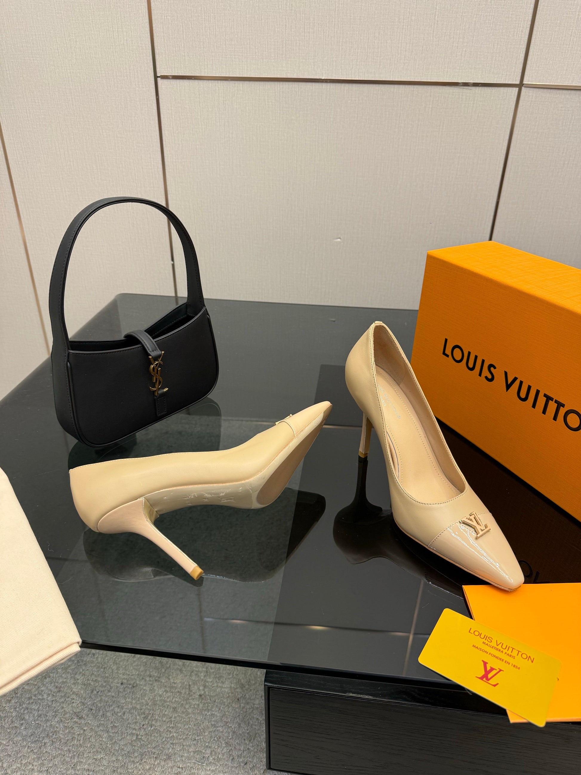 LV 26ss Heel Pump 90 Beige Patent Leather 629628