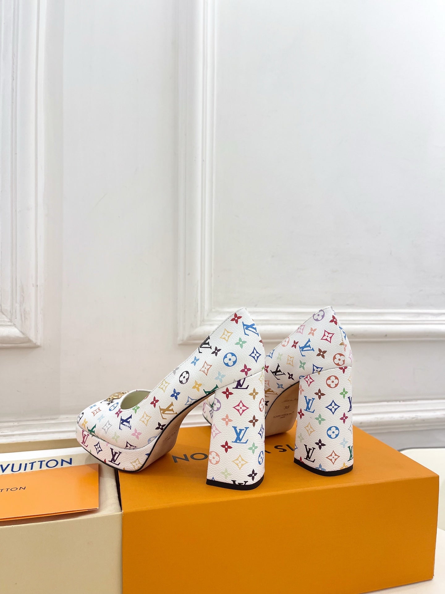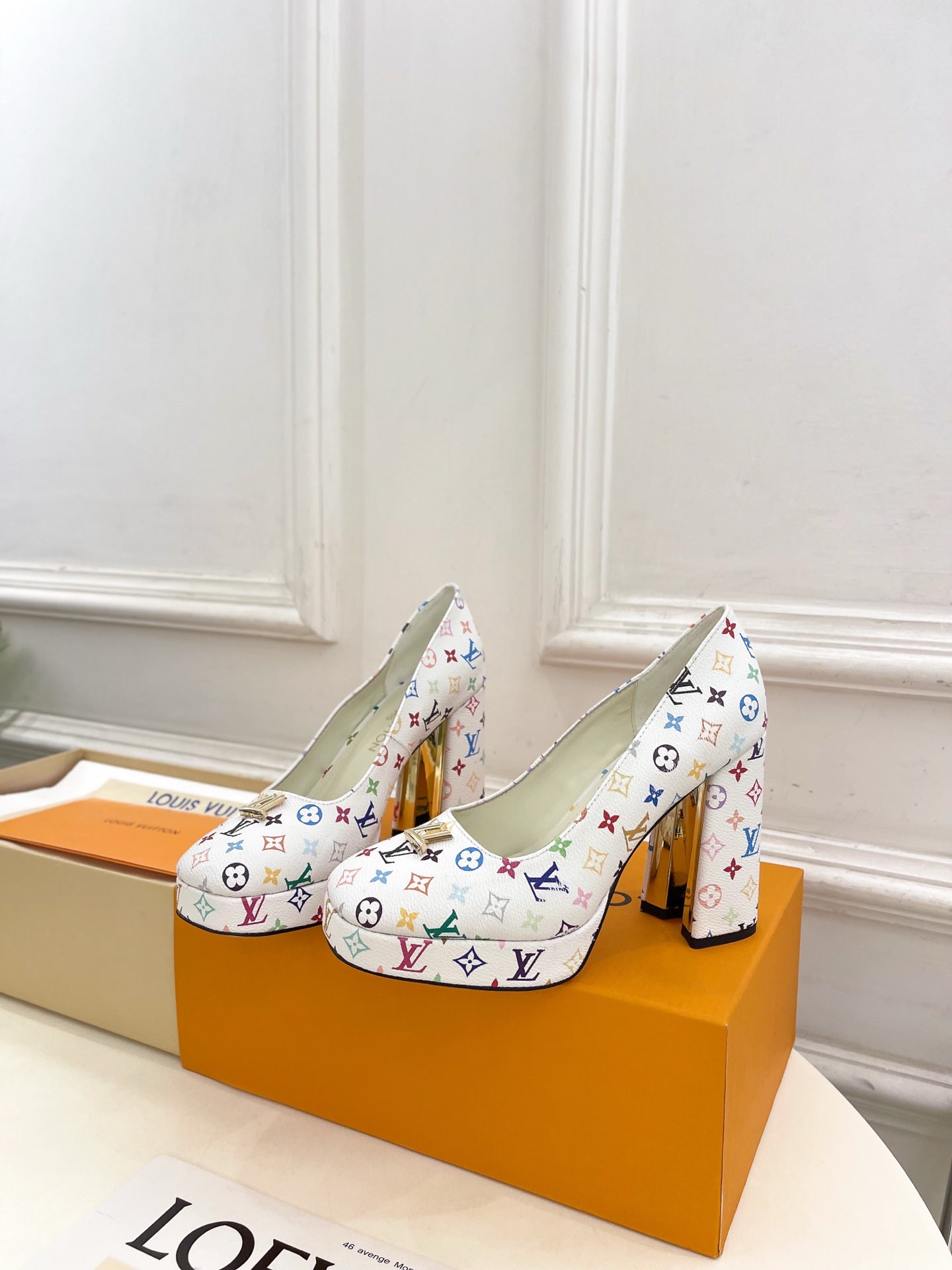 LV 26ss Pump 110 White Monogram Multicolor Leather 631921