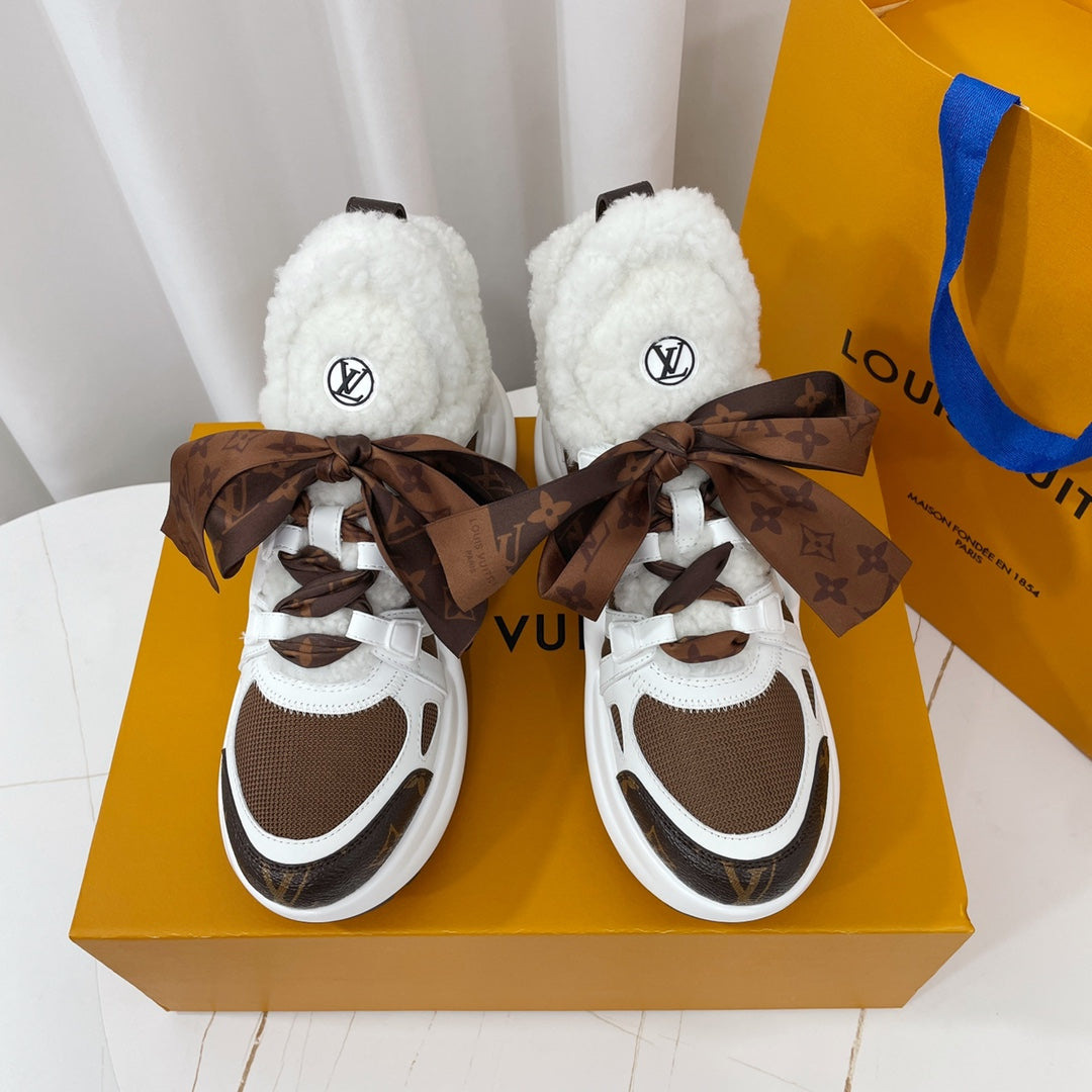 LV Archlight Sneaker White Mix Brown Monogram Bow Tie Lambskin