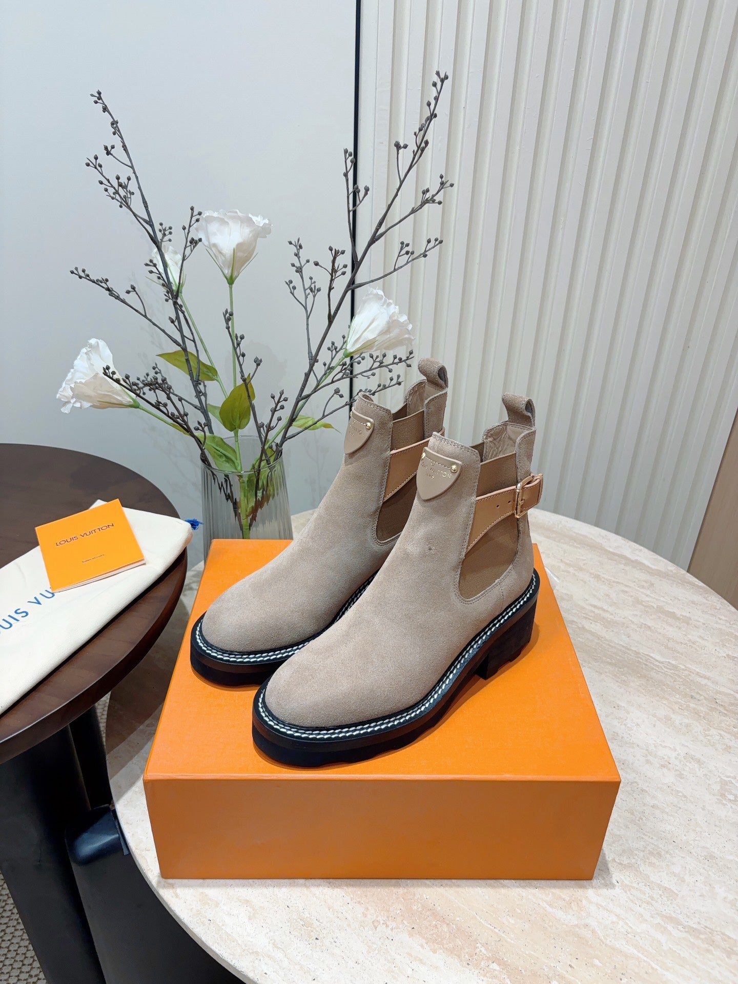 LV Beaubourg Ankle Boot Gray Brown Suede