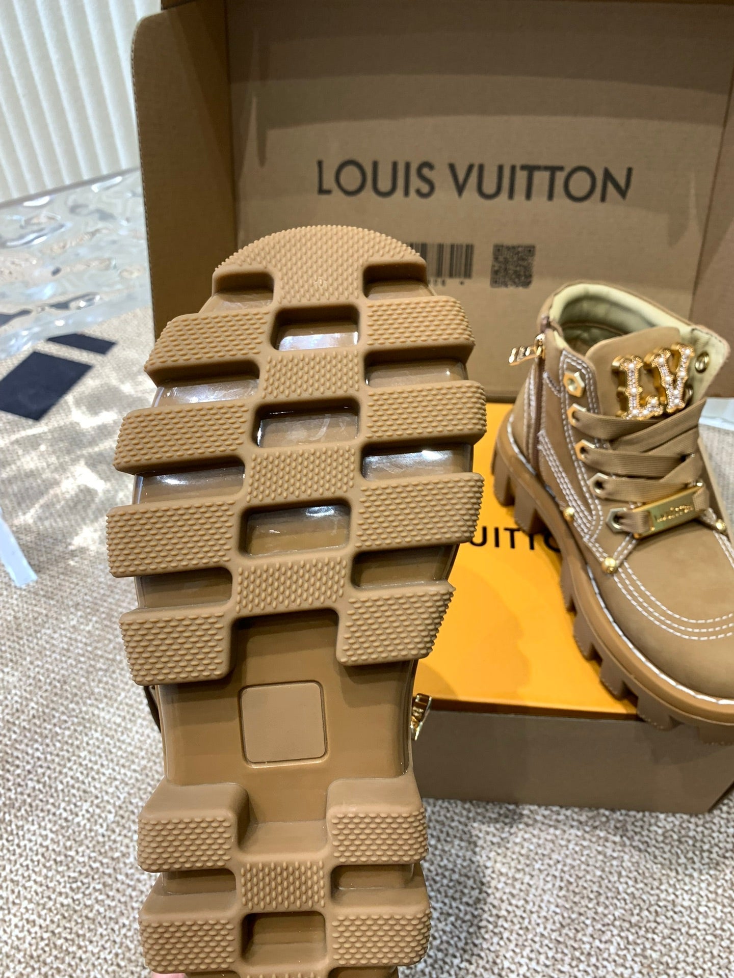LV Checker Ankle Boots Beige Nubuck Calfskin