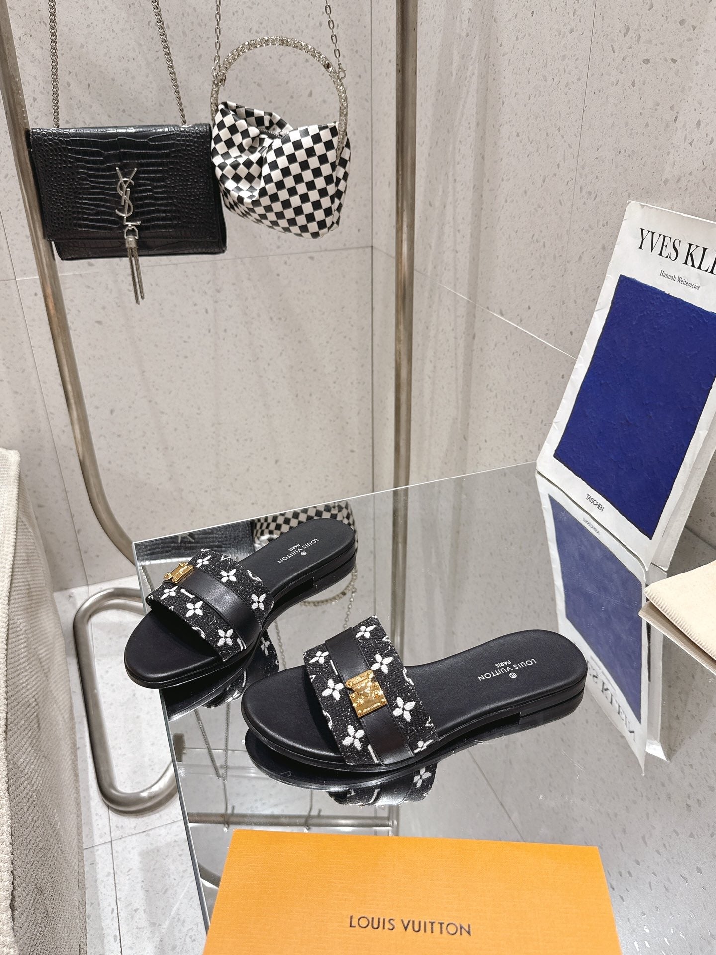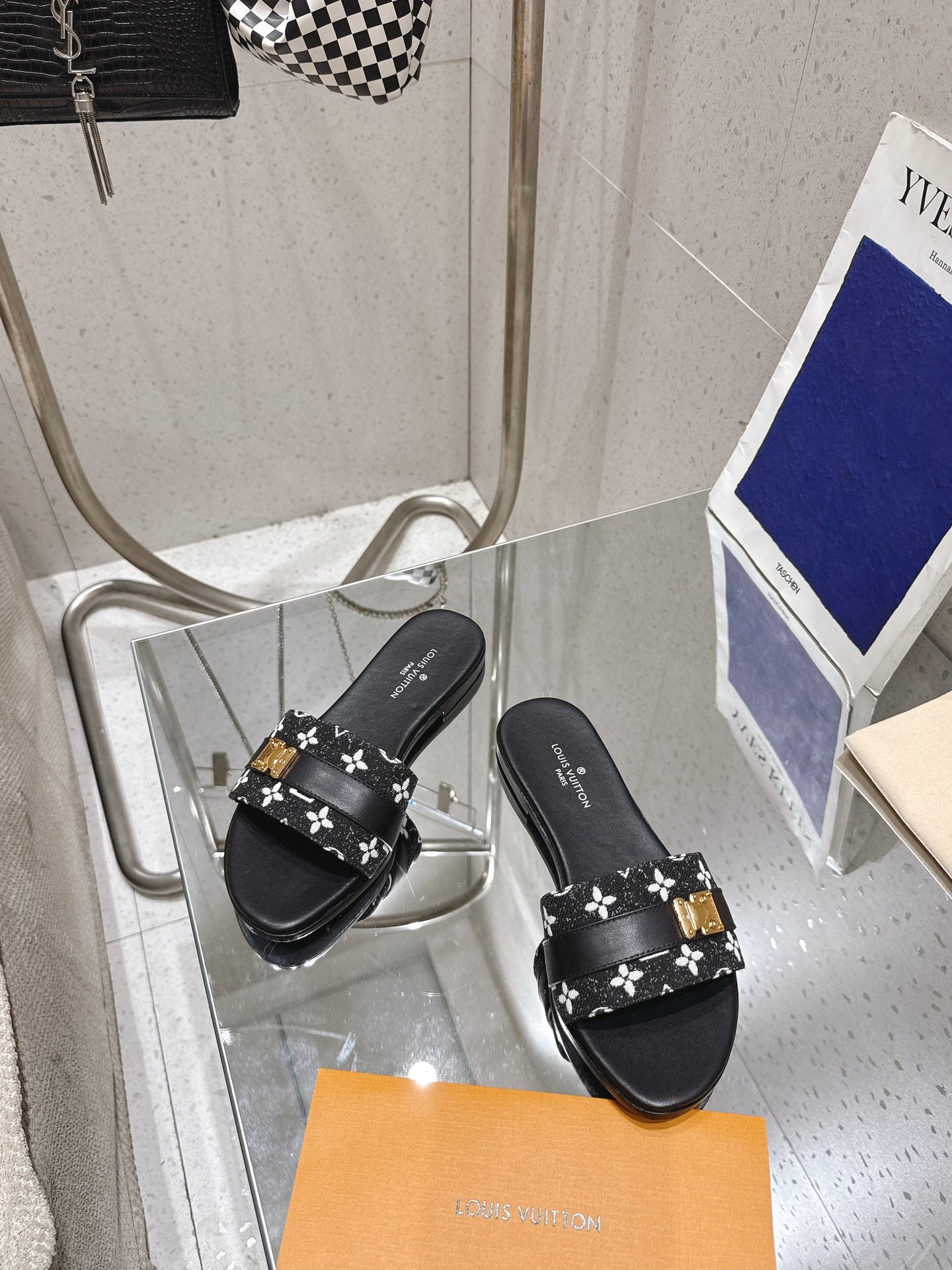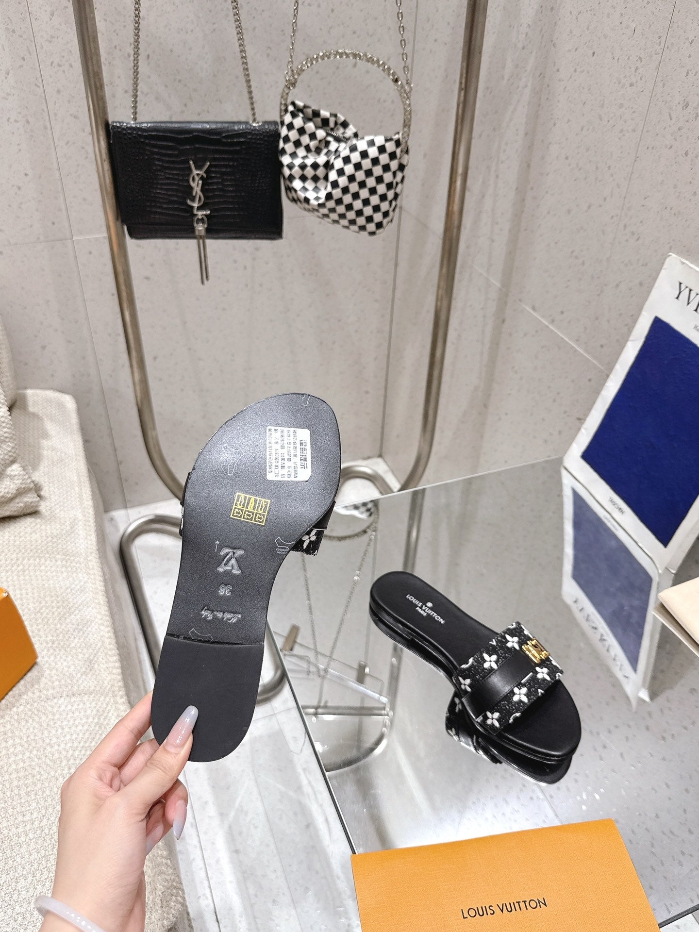 LV Flat Mules pairs raffia black monogram cowhide 383722