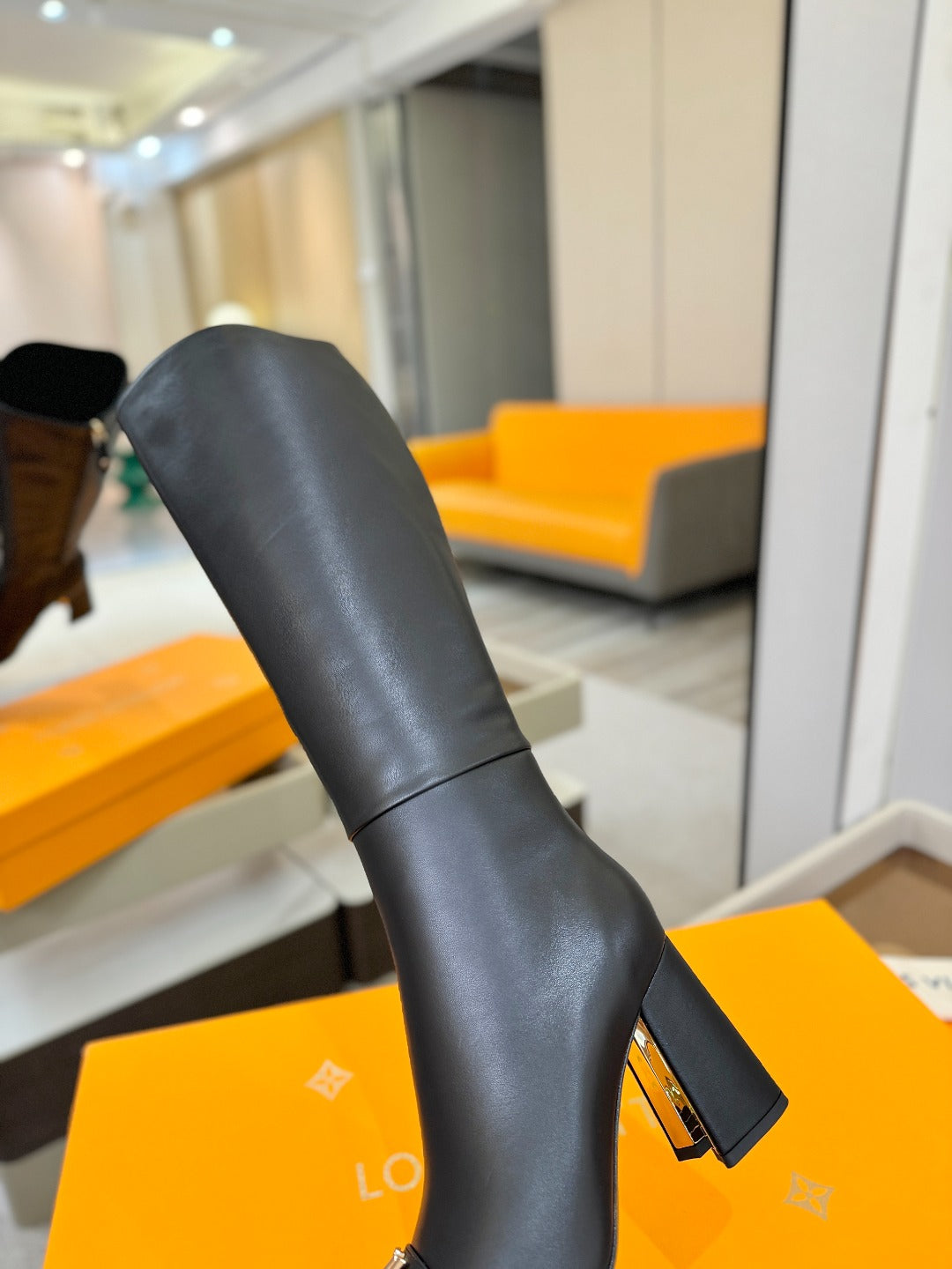 LV High Boots 85 Black Sheepskin 573732