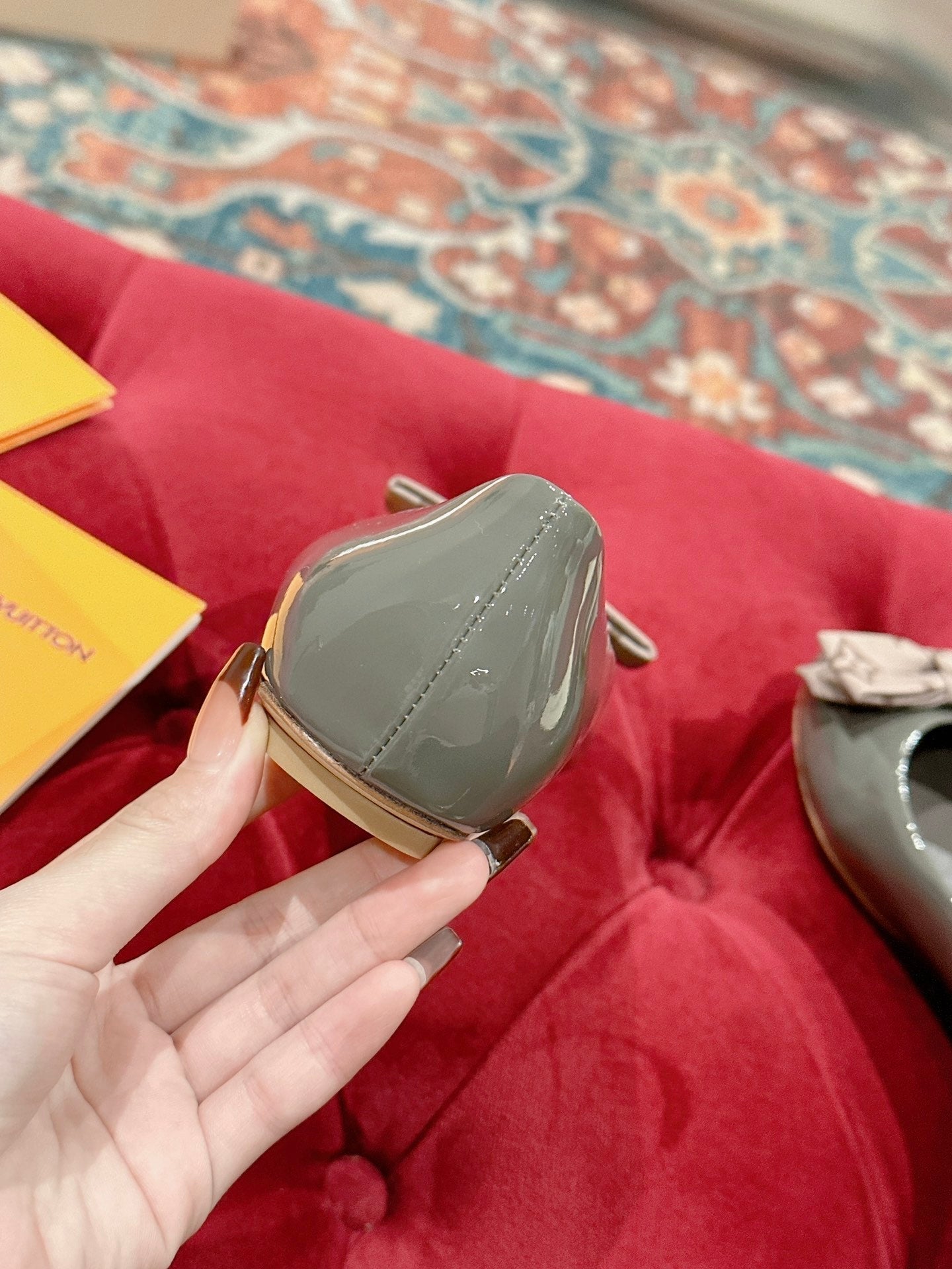 LV Popi Flat Ballerina Green Cement Color Cowhide