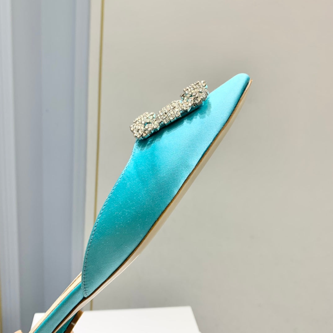 Manolo Buckle Flast Mules Electric Silk 327511